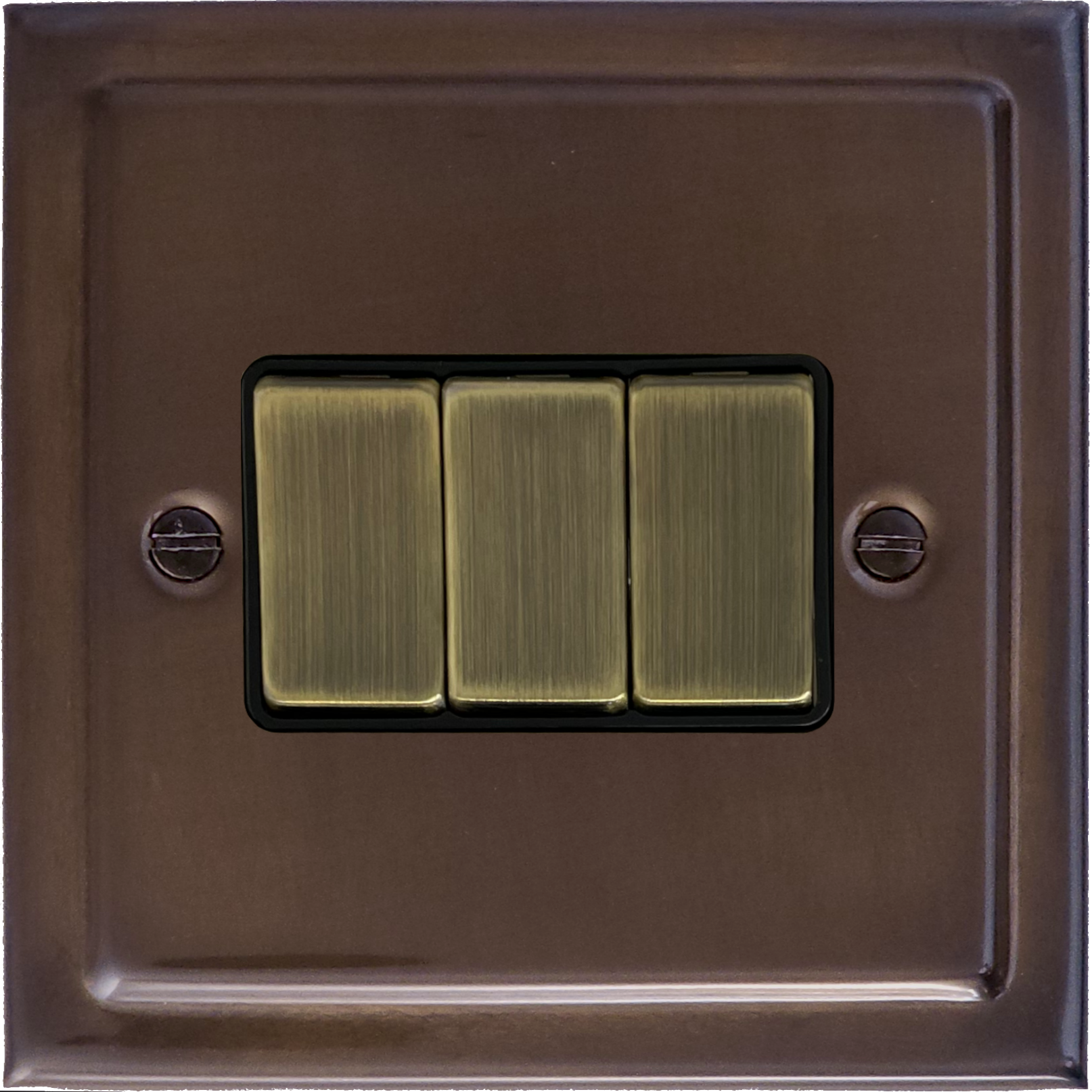Trimline Medium Bronze Light Switch (3 Gang/Black Insert/ Antique Brass Switches) - G+H TMBZ303-AB