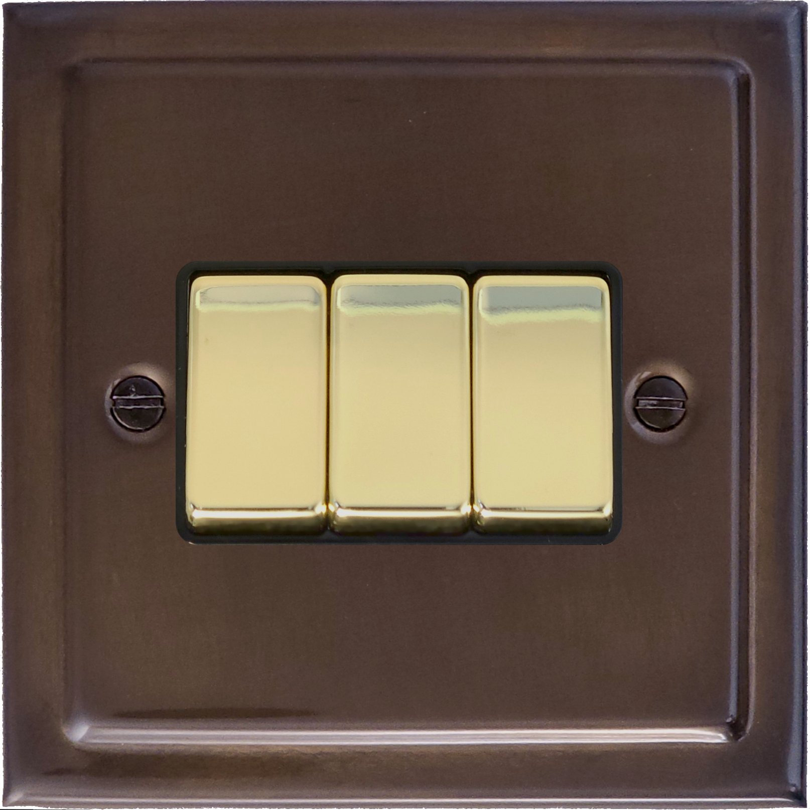 Trimline Medium Bronze Light Switch (3 Gang/Black Insert/ Polished Brass Switches)