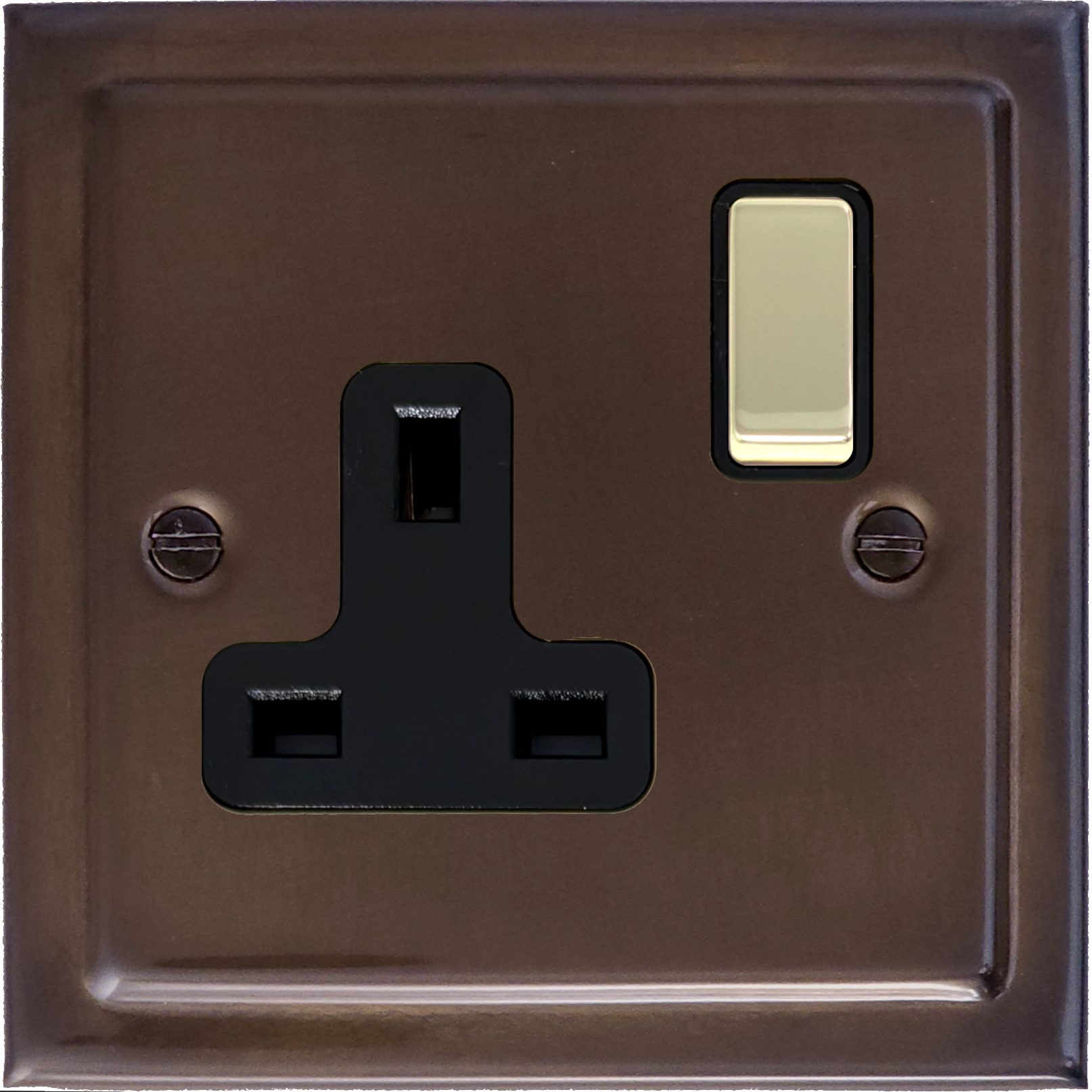 Trimline Medium Bronze Single Socket (Black Insert/Polished Brass Switch) - G+H TMBZ309-PB