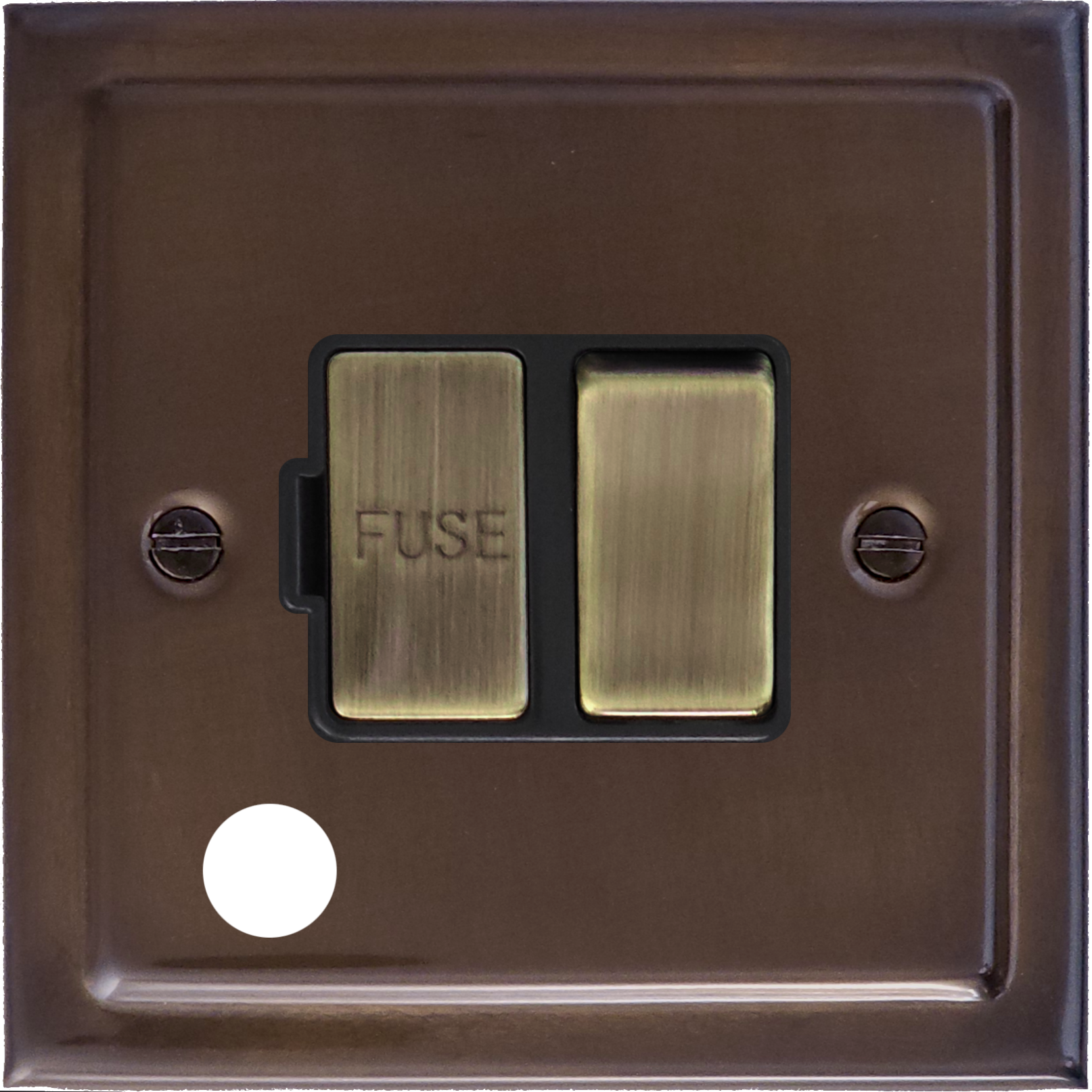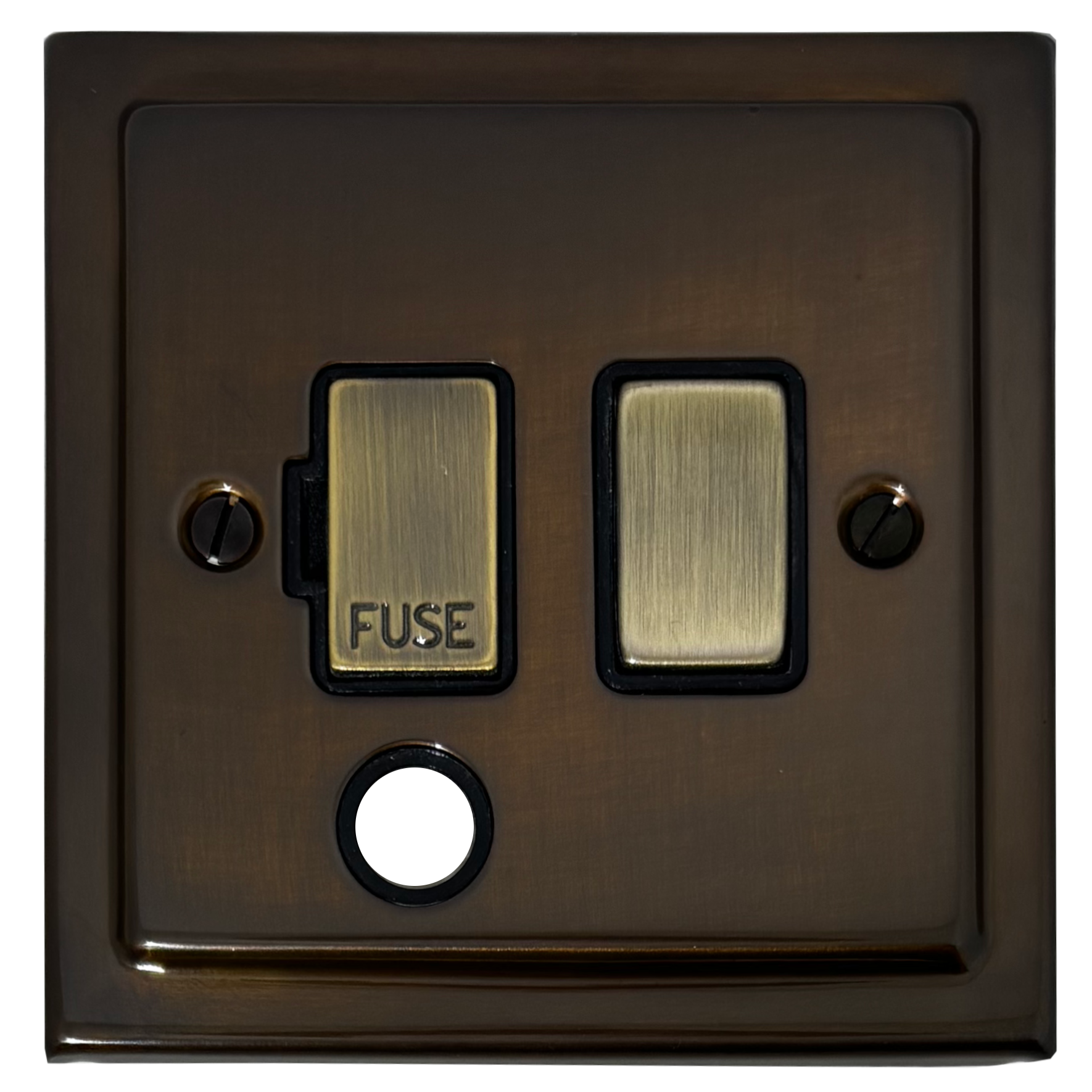Trimline Medium Bronze Switched Fused Spur with Flex Outlet (Black Insert/Antique Brass Switch) - G+H TMBZ356-AB