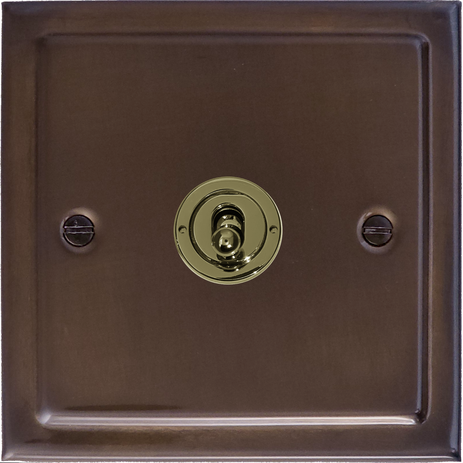 Trimline Medium Bronze Toggle Switch (1 Gang/Polished Brass Toggle) - G+H TMBZ381-PB