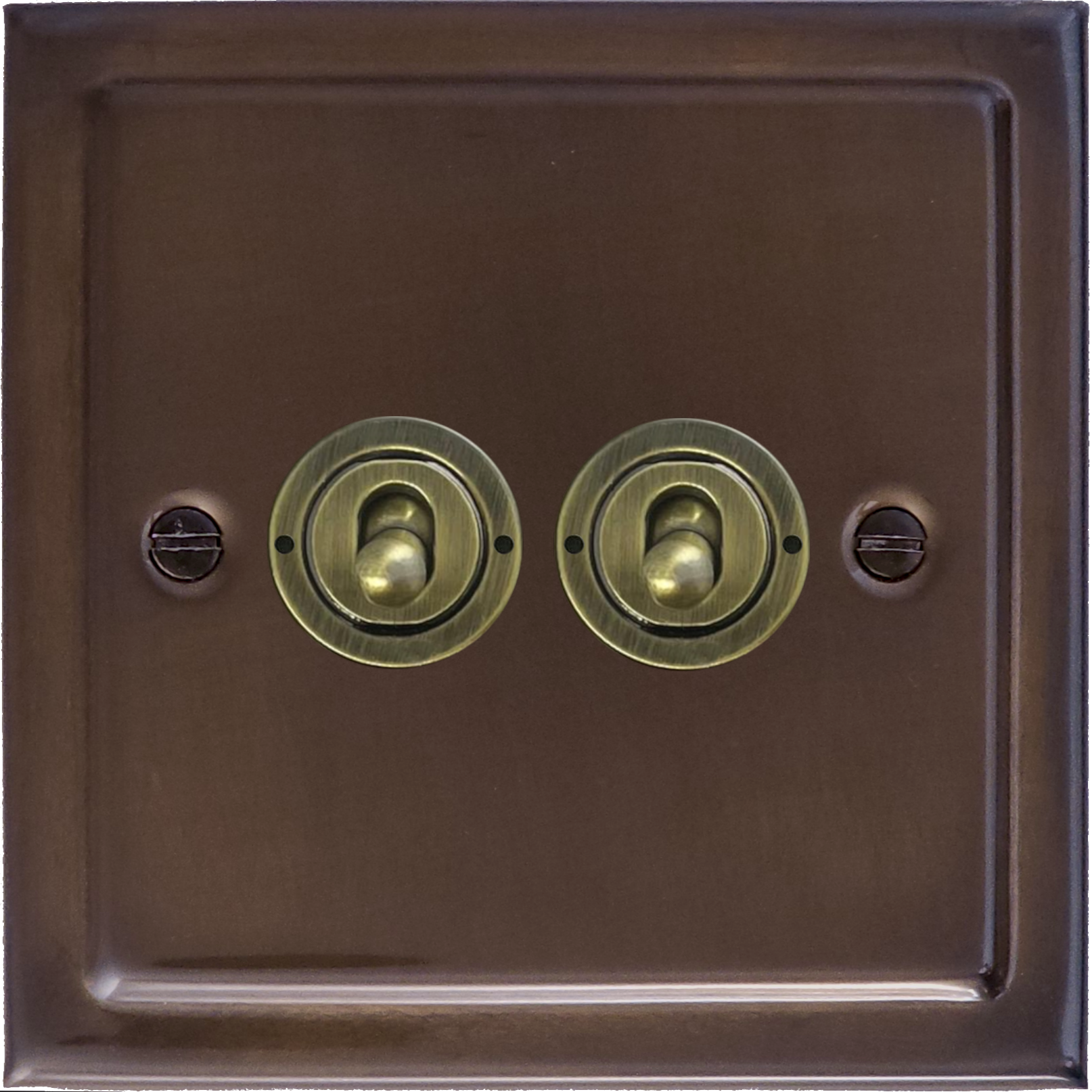 Trimline Medium Bronze Toggle Switch (2 Gang/Antique Brass Switches) - G+H TMBZ382-AB
