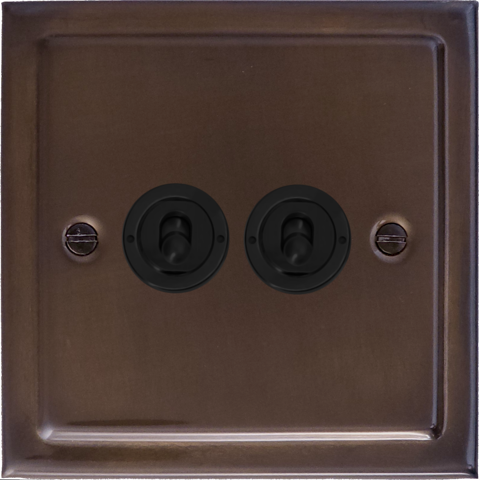 Trimline Medium Bronze Toggle Switch (2 Gang/Black Toggle) - G+H TMBZ382-FBK