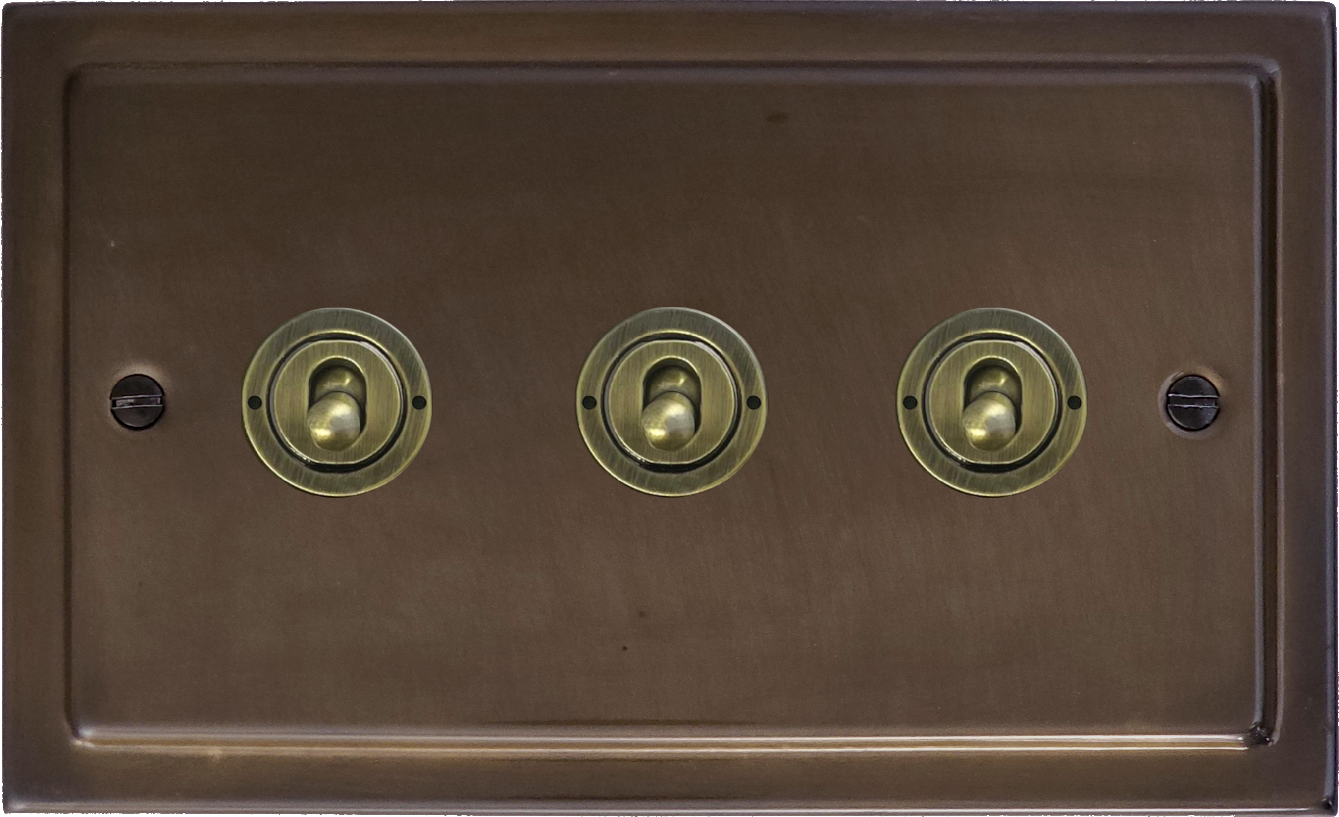 Trimline Medium Bronze Toggle Switch (3 Gang/Antique Brass Switches) - G+H TMBZ383-AB