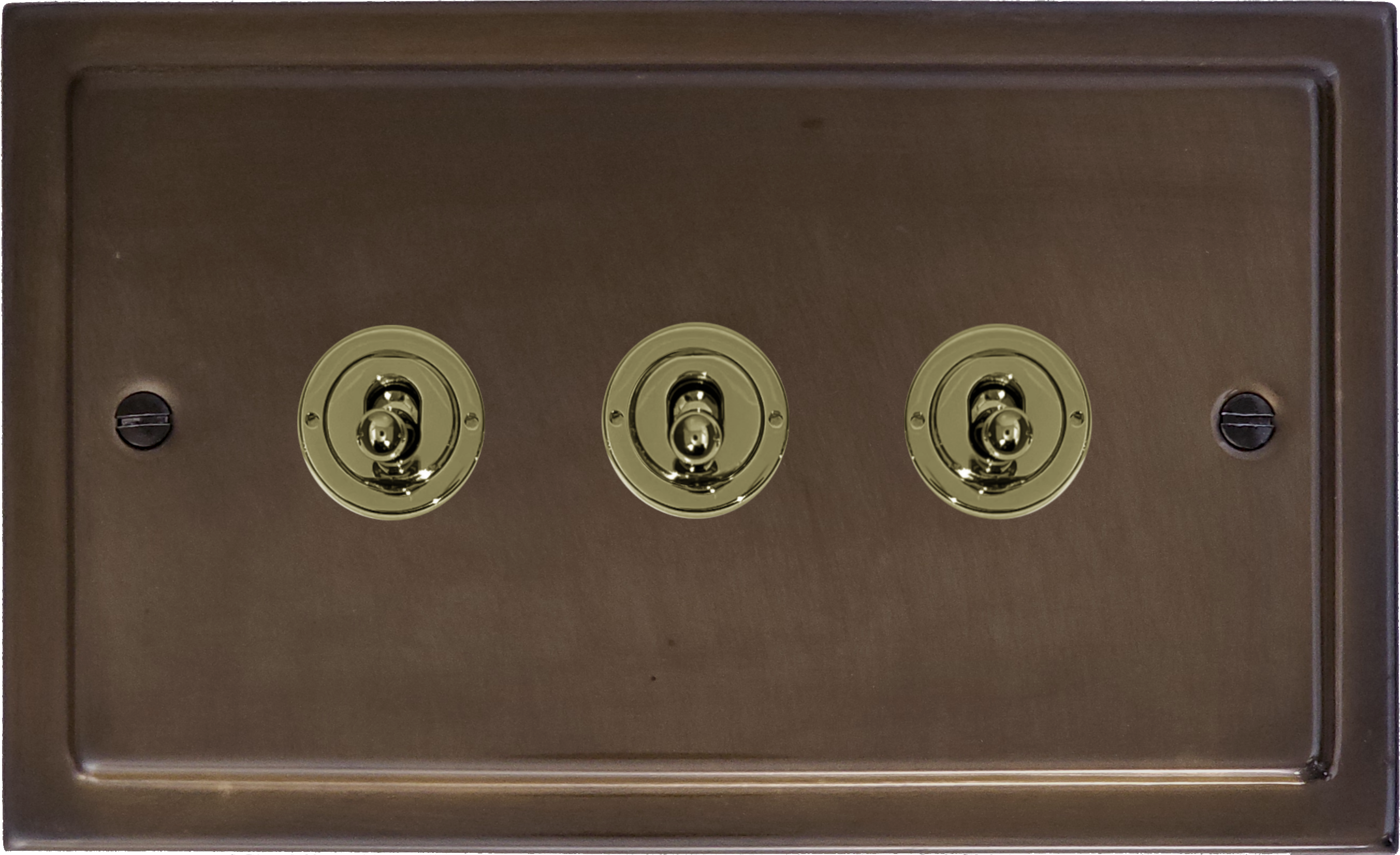 Trimline Medium Bronze Toggle Switch (3 Gang/Polished Brass Toggle) - G+H TMBZ383-PB