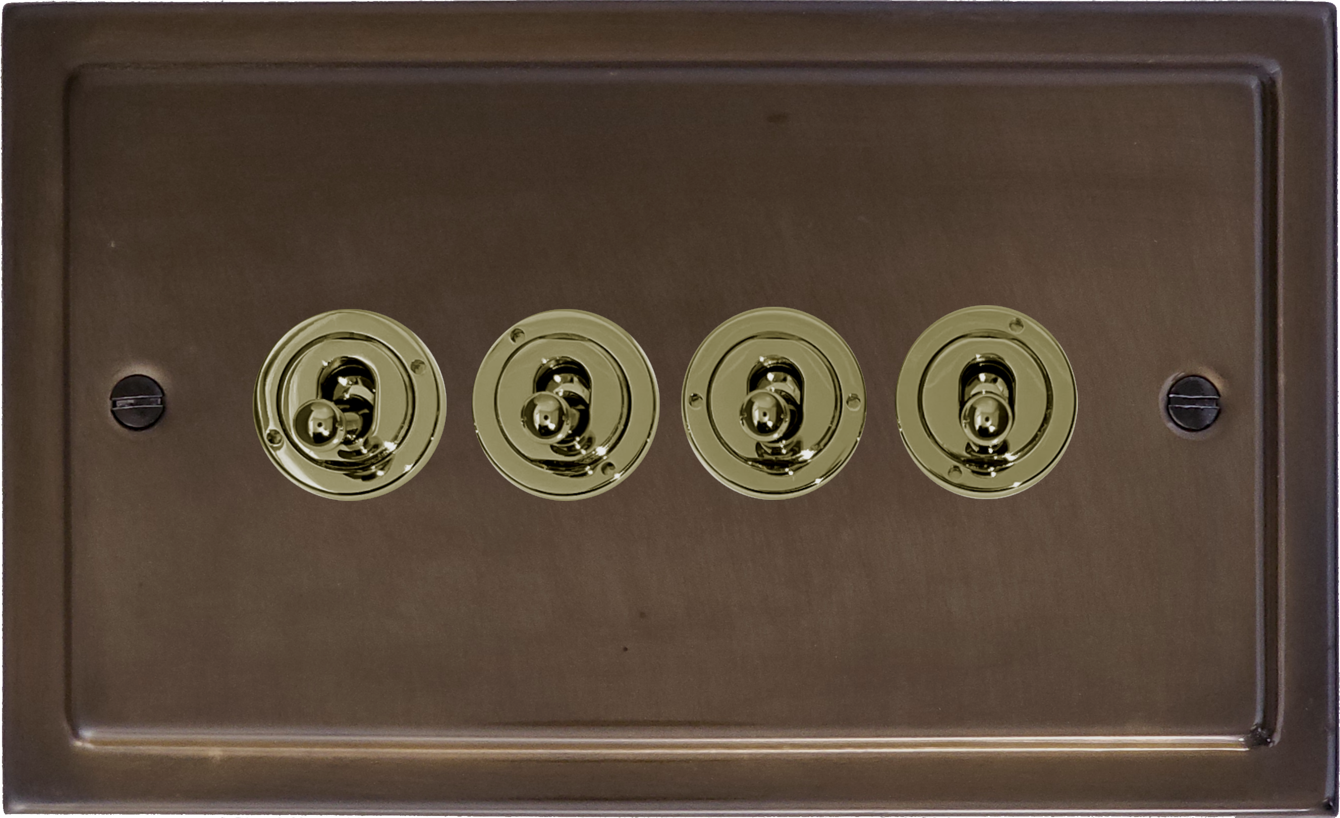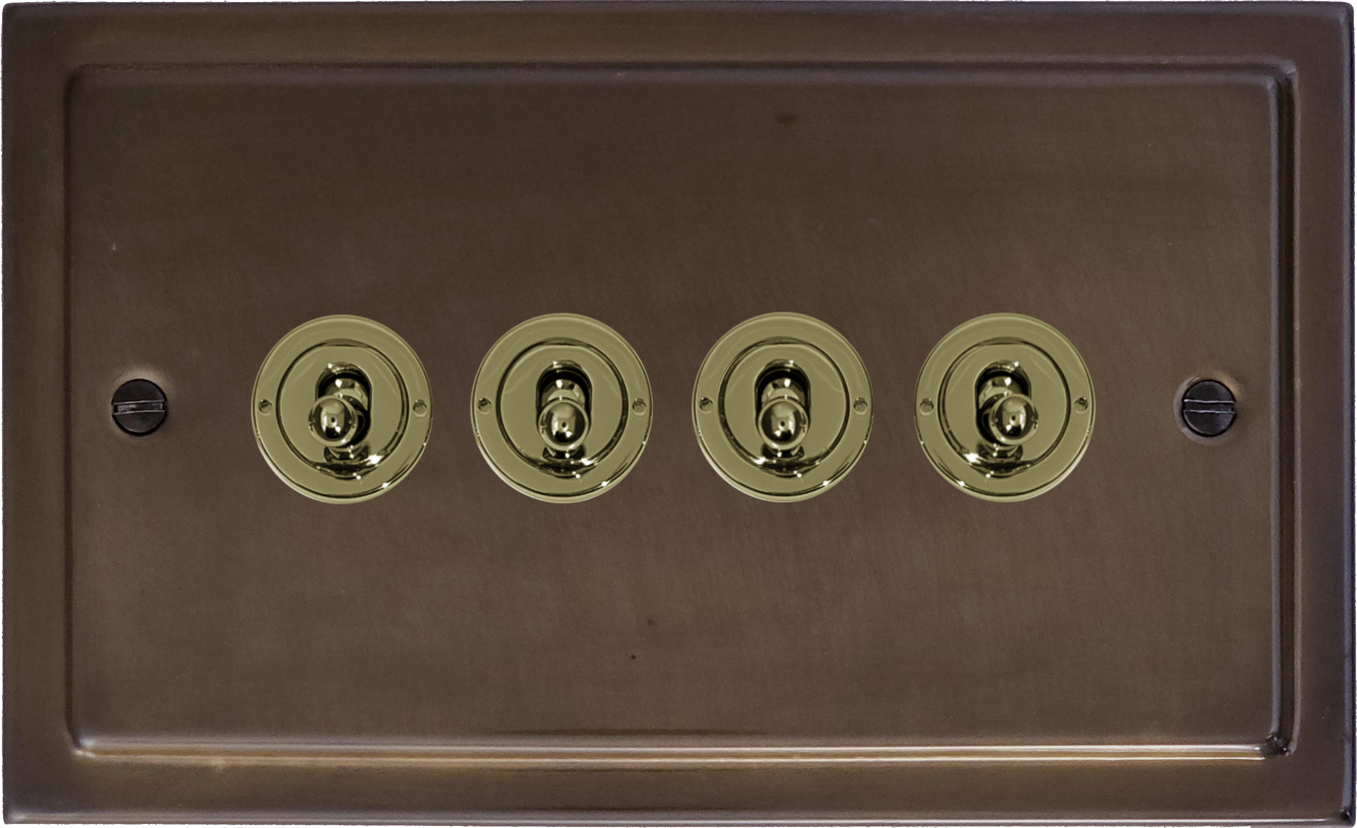 Trimline Medium Bronze Toggle Switch (4 Gang/Polished Brass Toggle) - G+H TMBZ384-PB