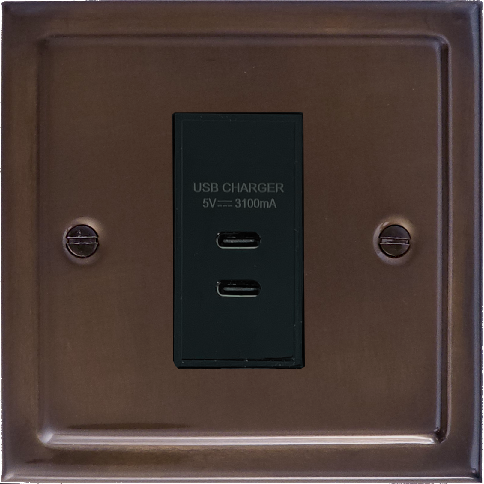 Trimline Medium Bronze USB Charger (2x USB-C) (1 Gang) - G+H TMBZ42B
