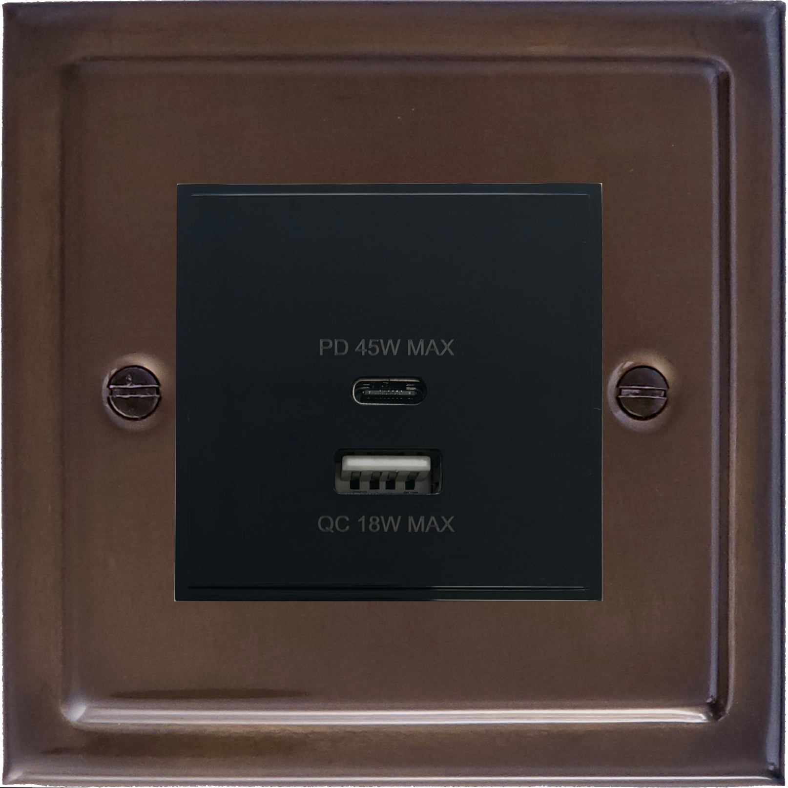 Trimline Medium Bronze USB Charger (Dual USB A + C Quick Charge) (1 Gang) - G+H TMBZ43B
