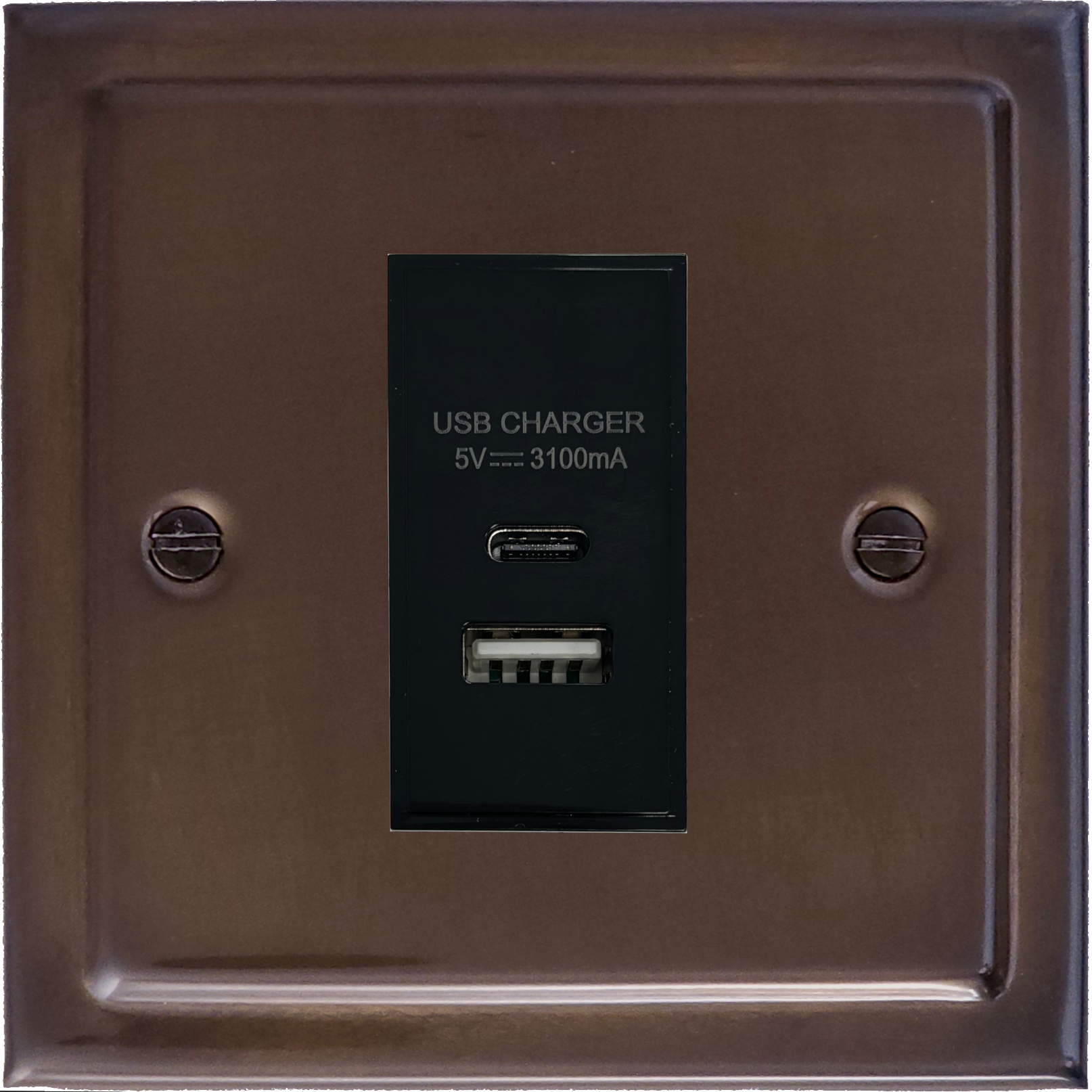 Trimline Medium Bronze USB Charger (USB-A and USB-C) (1 Gang) - G+H TMBZ41B