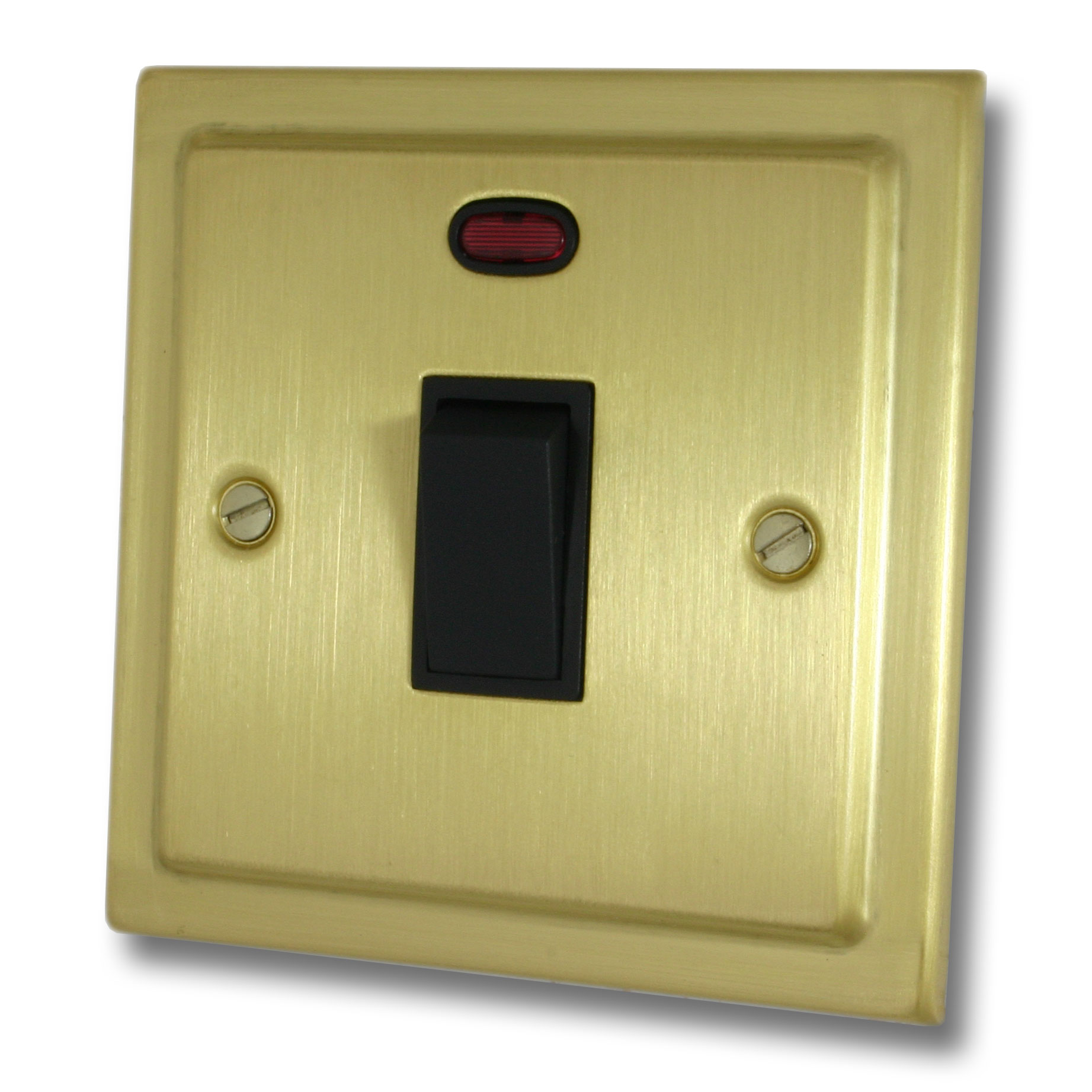 Trimline Satin Brass 20A DP Switch with Neon (Black Switch) - G+H TSB26B