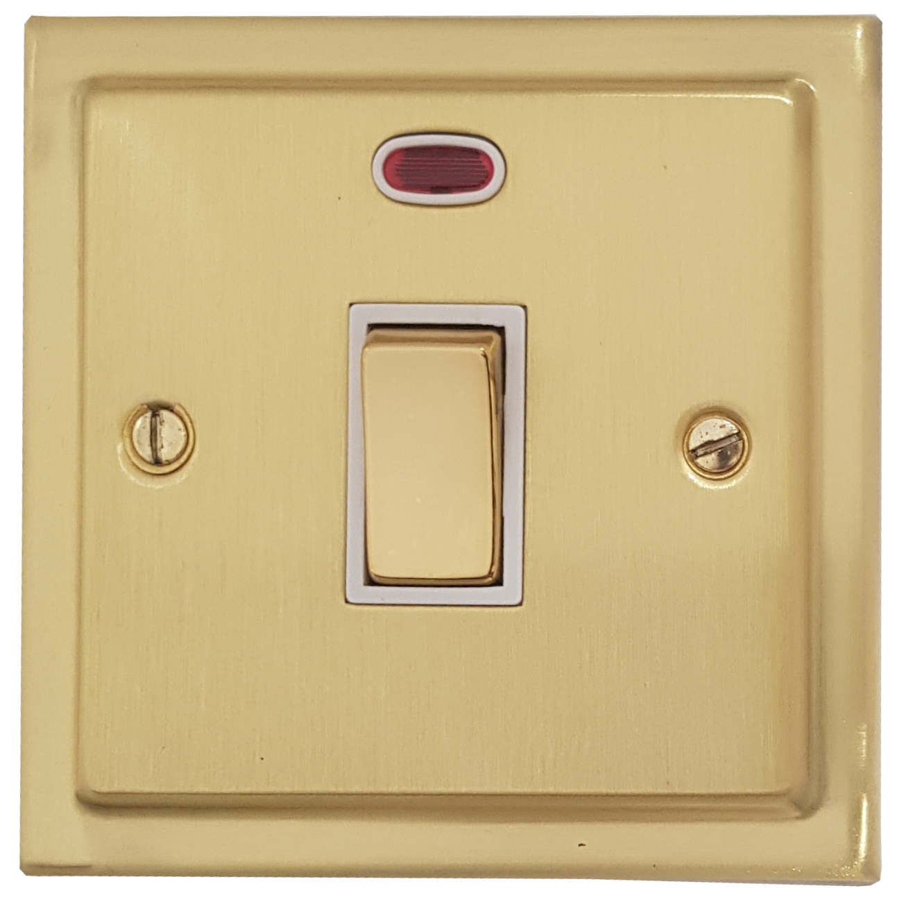Trimline Satin Brass 20A DP Switch with Neon (Brass Switch/White Insert) - G+H TSB226