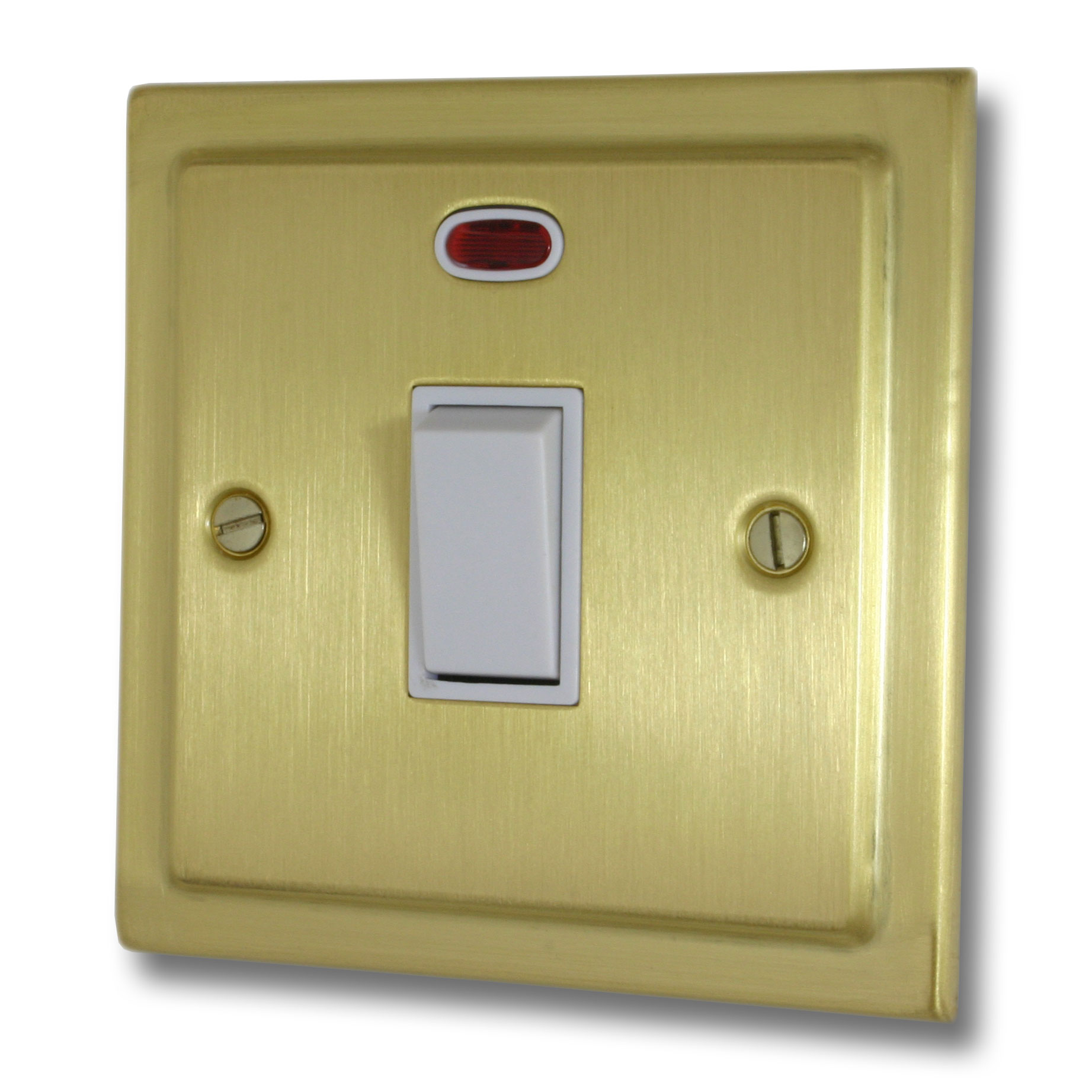 Trimline Satin Brass 20A DP Switch with Neon (White Switch) - G+H TSB26W