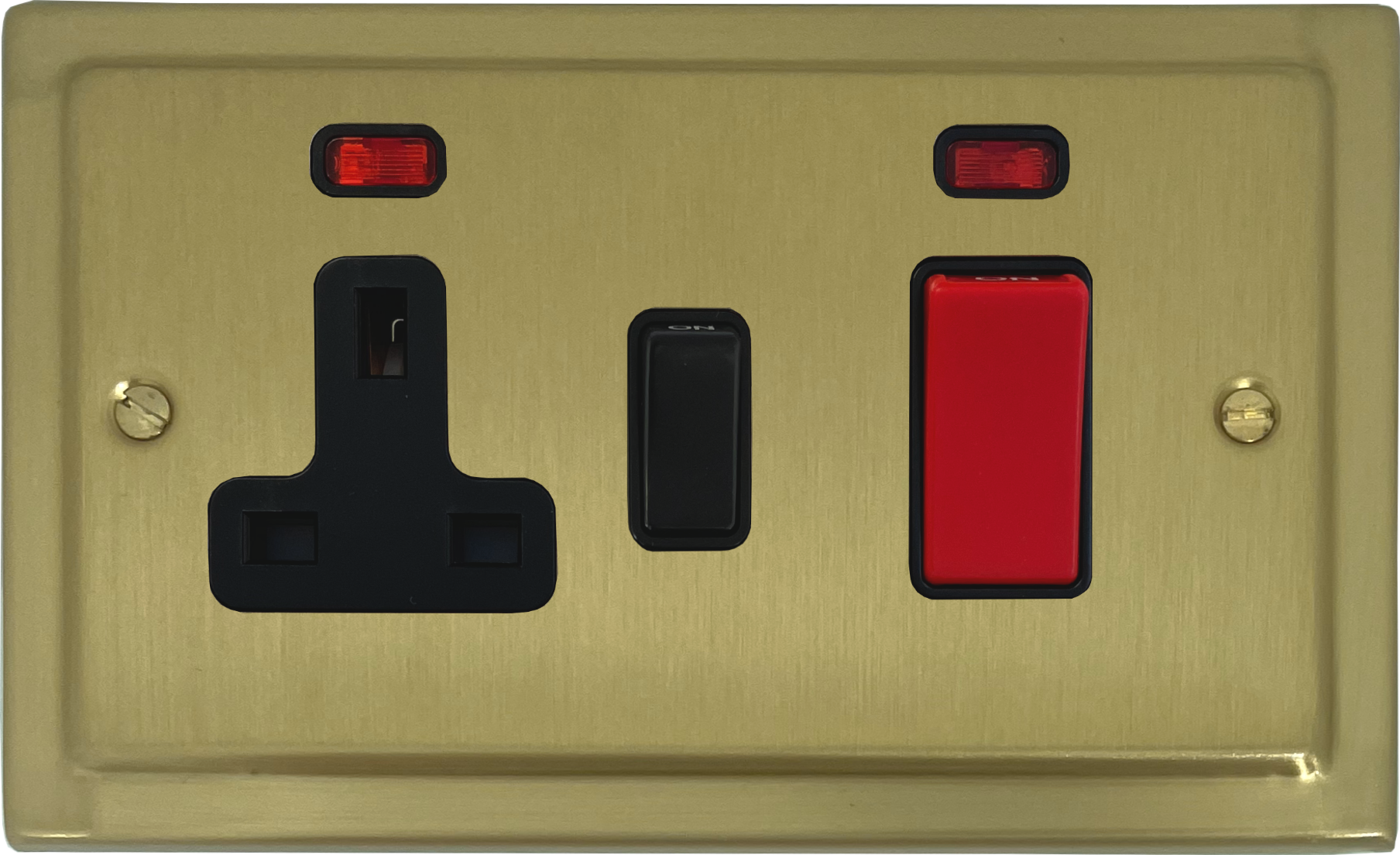Trimline Satin Brass Cooker Switch with Socket (Black Switch) - G+H TSB29B