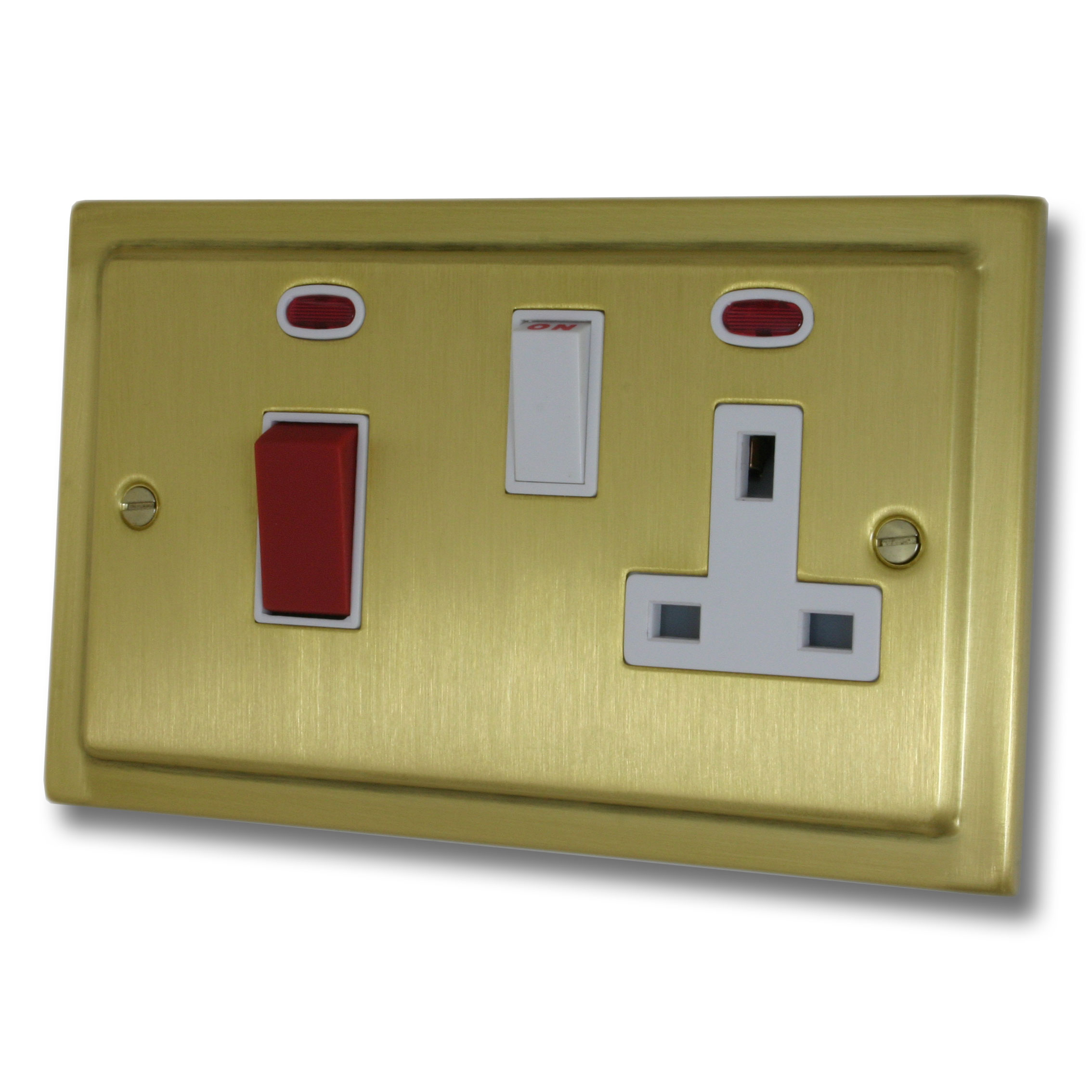 Trimline Satin Brass Cooker Switch with Socket (White Switch) - G+H TSB29W