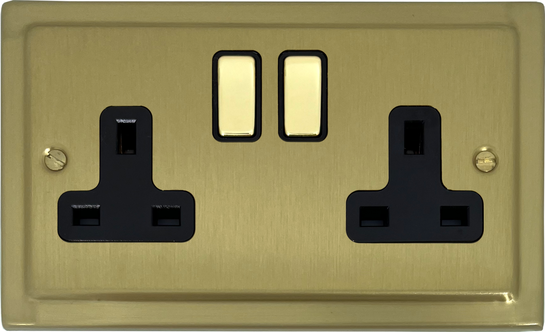 Trimline Satin Brass Double Socket (Brass Switch) - G+H TSB310
