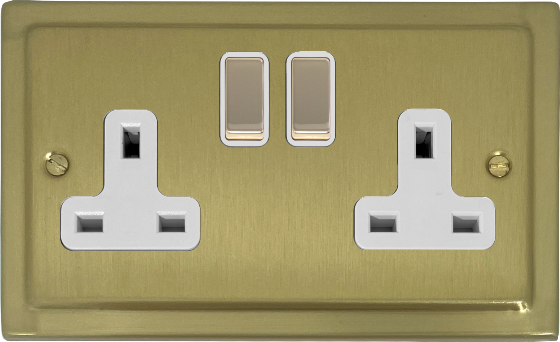 Trimline Satin Brass Double Socket (Brass Switch/White Insert) - G+H TSB210