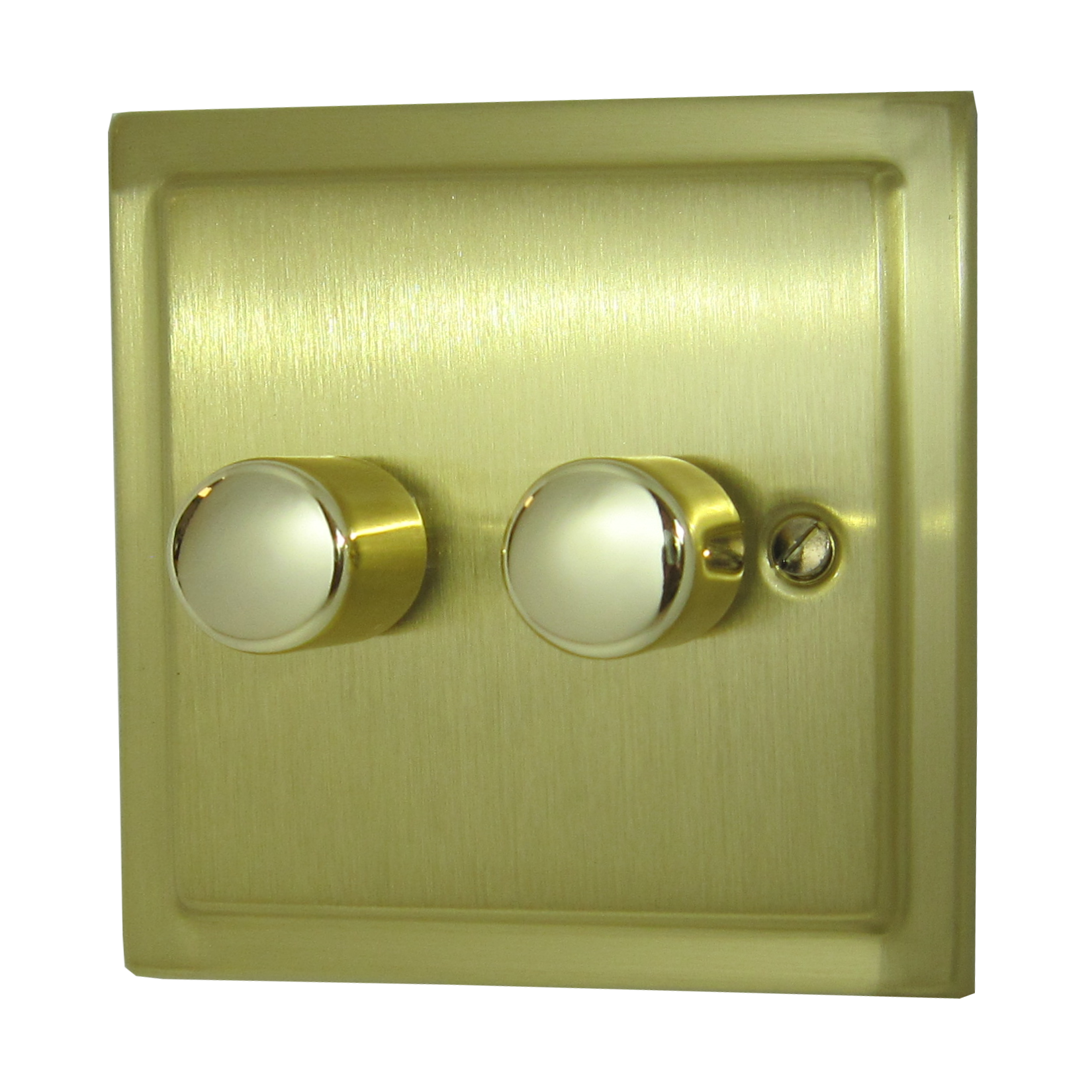Trimline Satin Brass LED Dimmer (2 Gang)