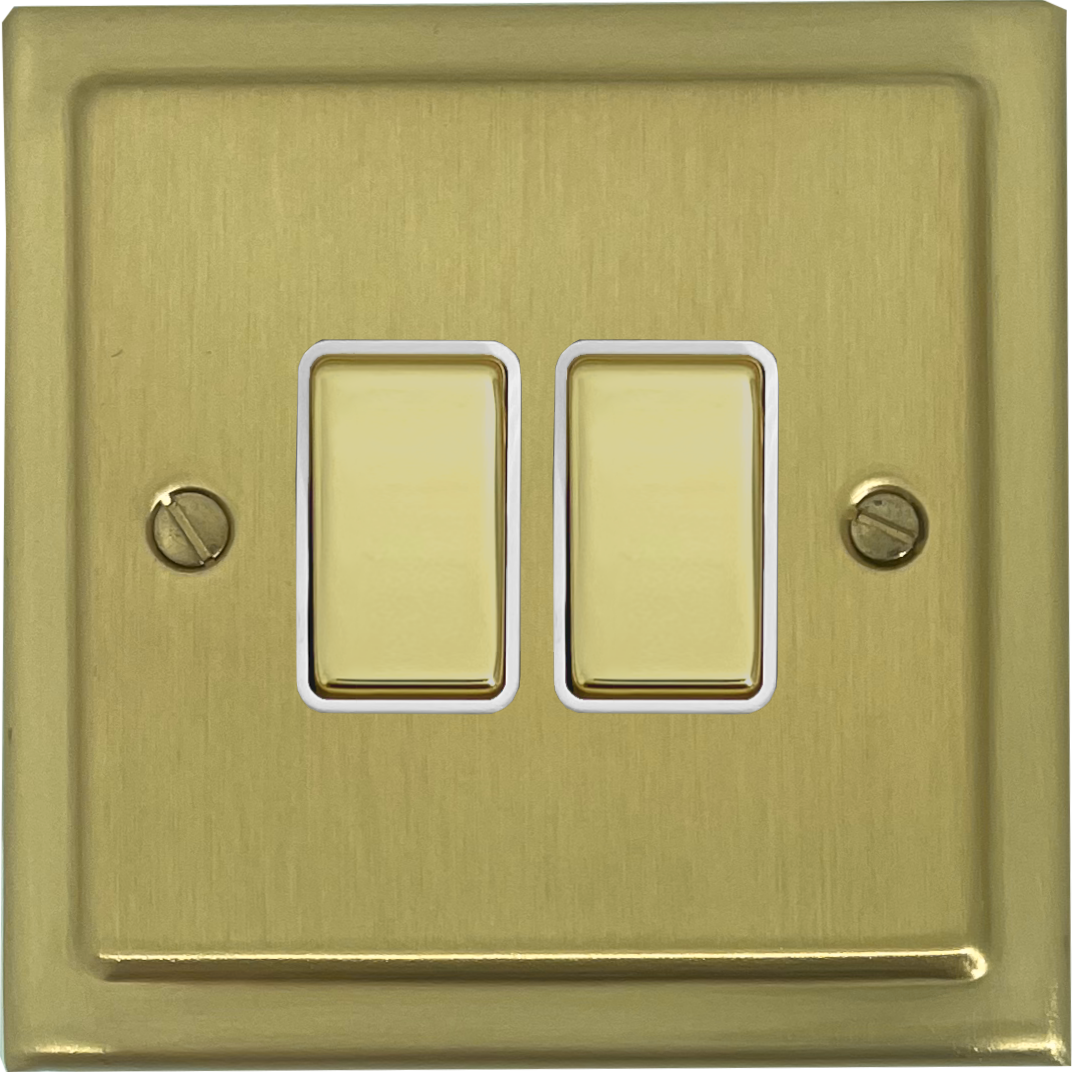 Trimline Satin Brass Light Switch (2 Gang/Brass Switches/White Insert)