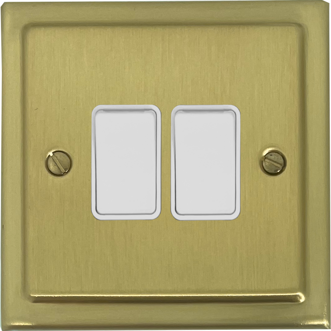 Trimline Satin Brass Light Switch (2 Gang/White Switches) - G+H TSB2W