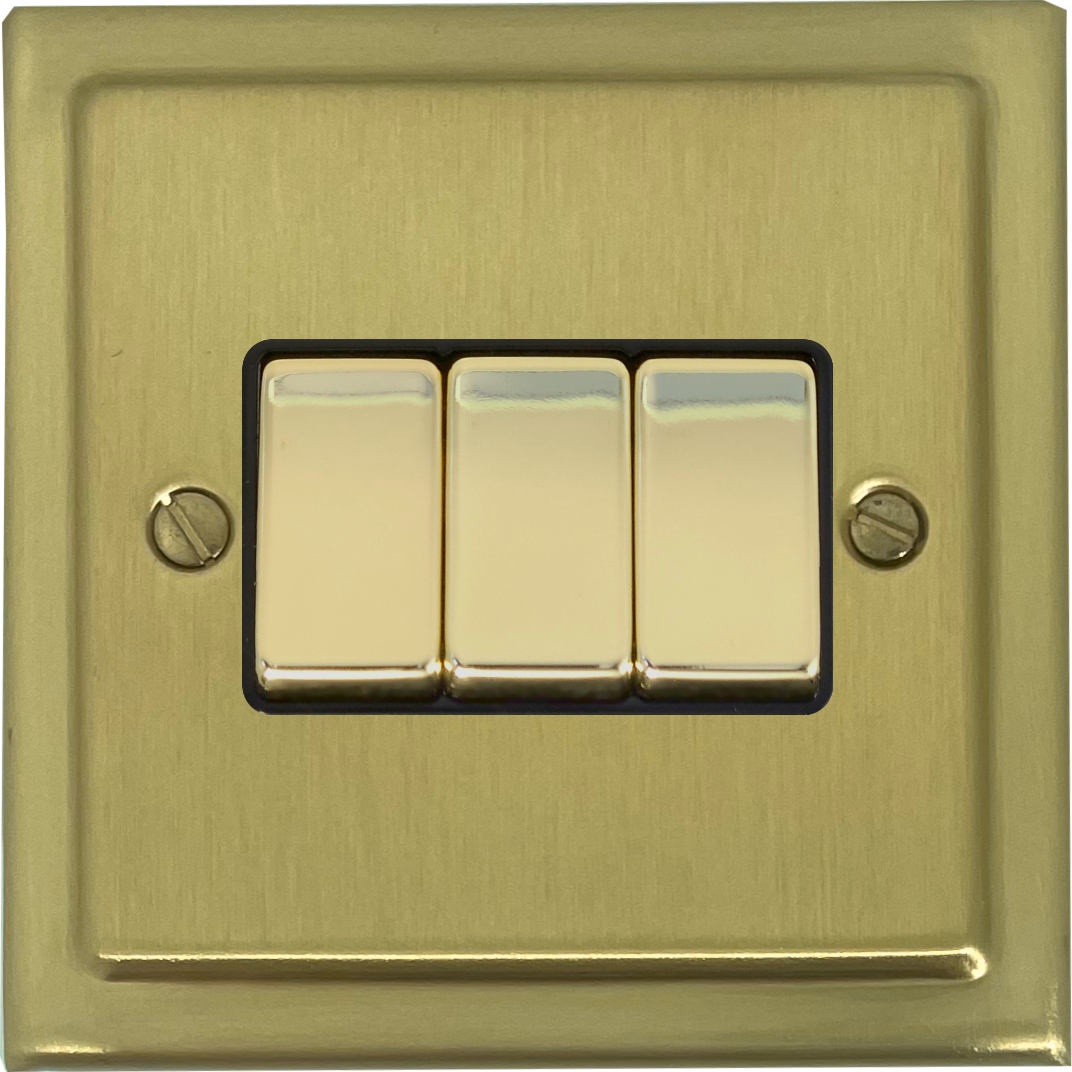 Trimline Satin Brass Light Switch (3 Gang/Brass Switch) - G+H TSB303