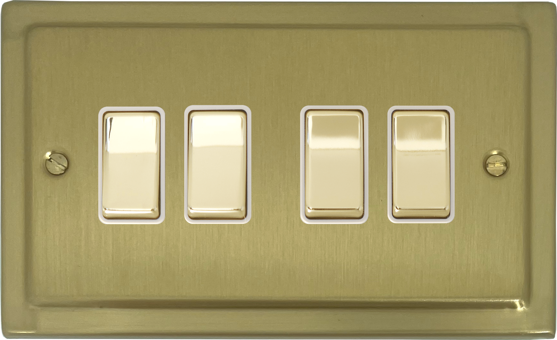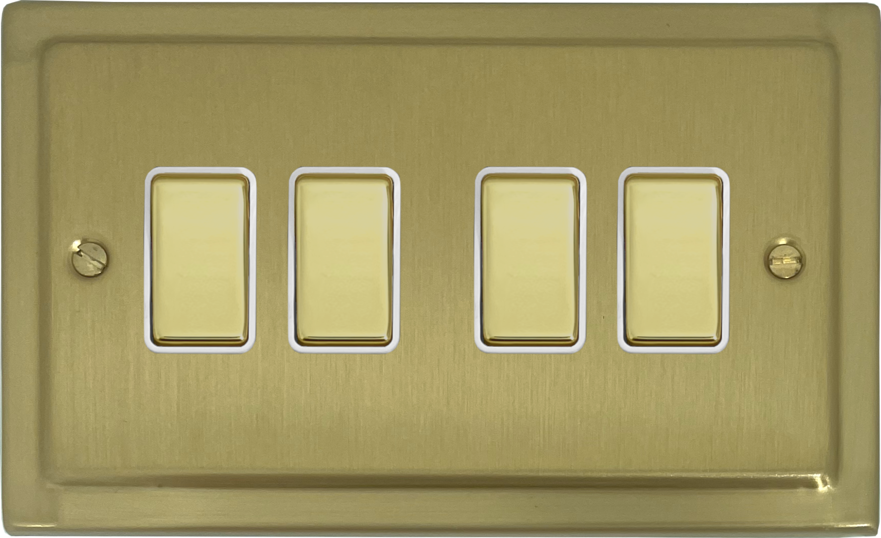 Trimline Satin Brass Light Switch (4 Gang/Brass Switches/White Insert) - G+H TSB204
