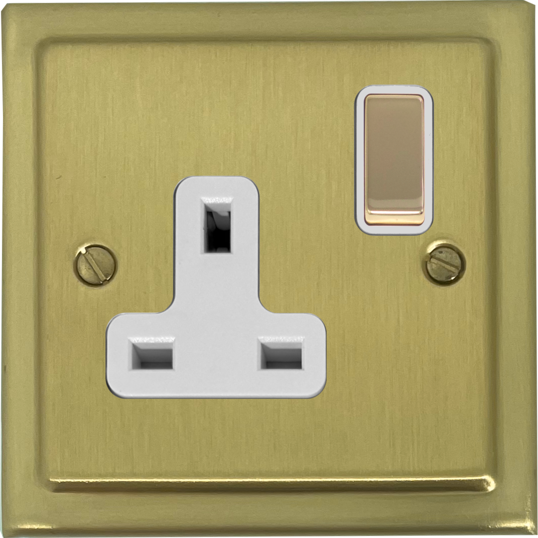 Trimline Satin Brass Single Socket (Brass Switch/White Insert) - G+H TSB209