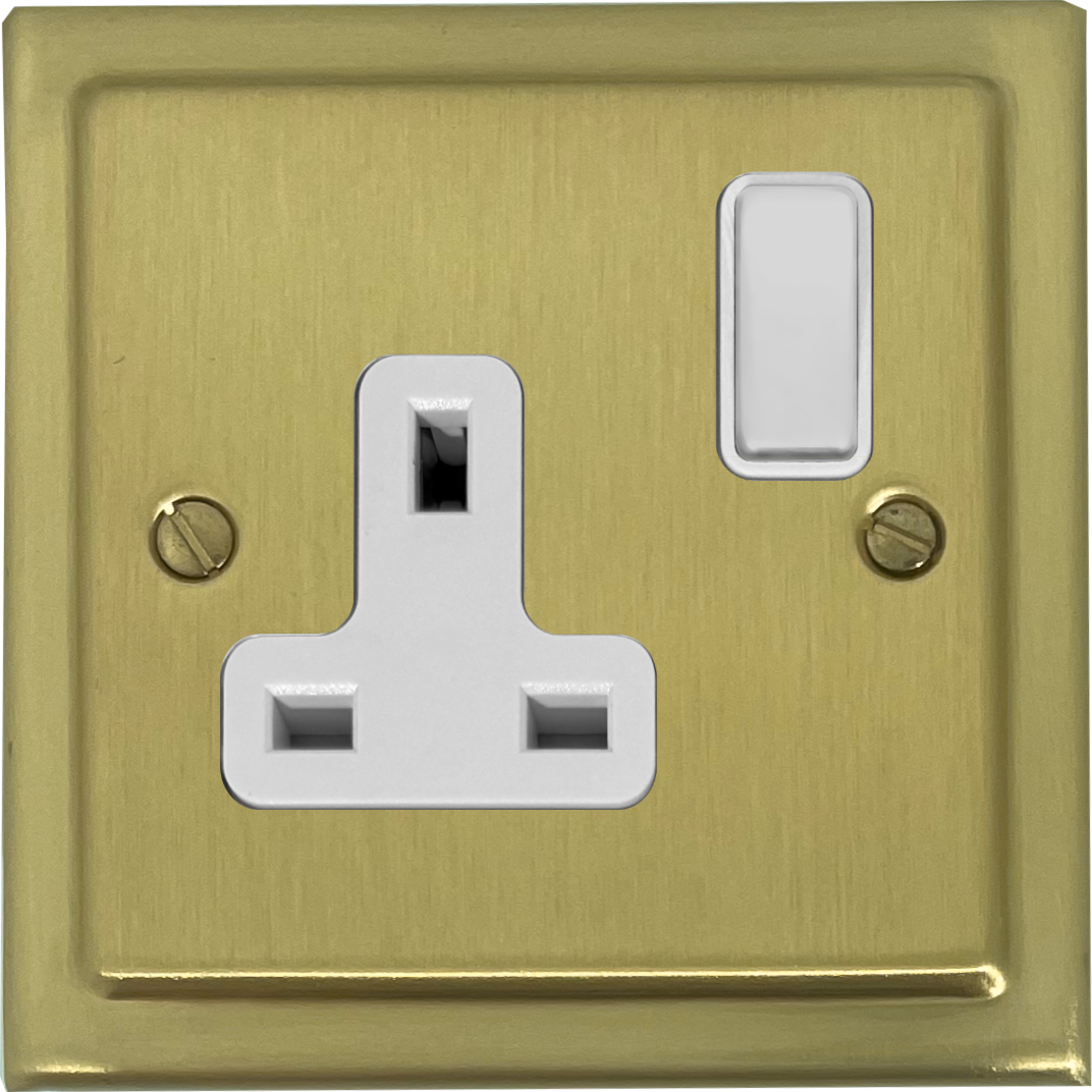 Trimline Satin Brass Single Socket (White Switch) - G+H TSB9W