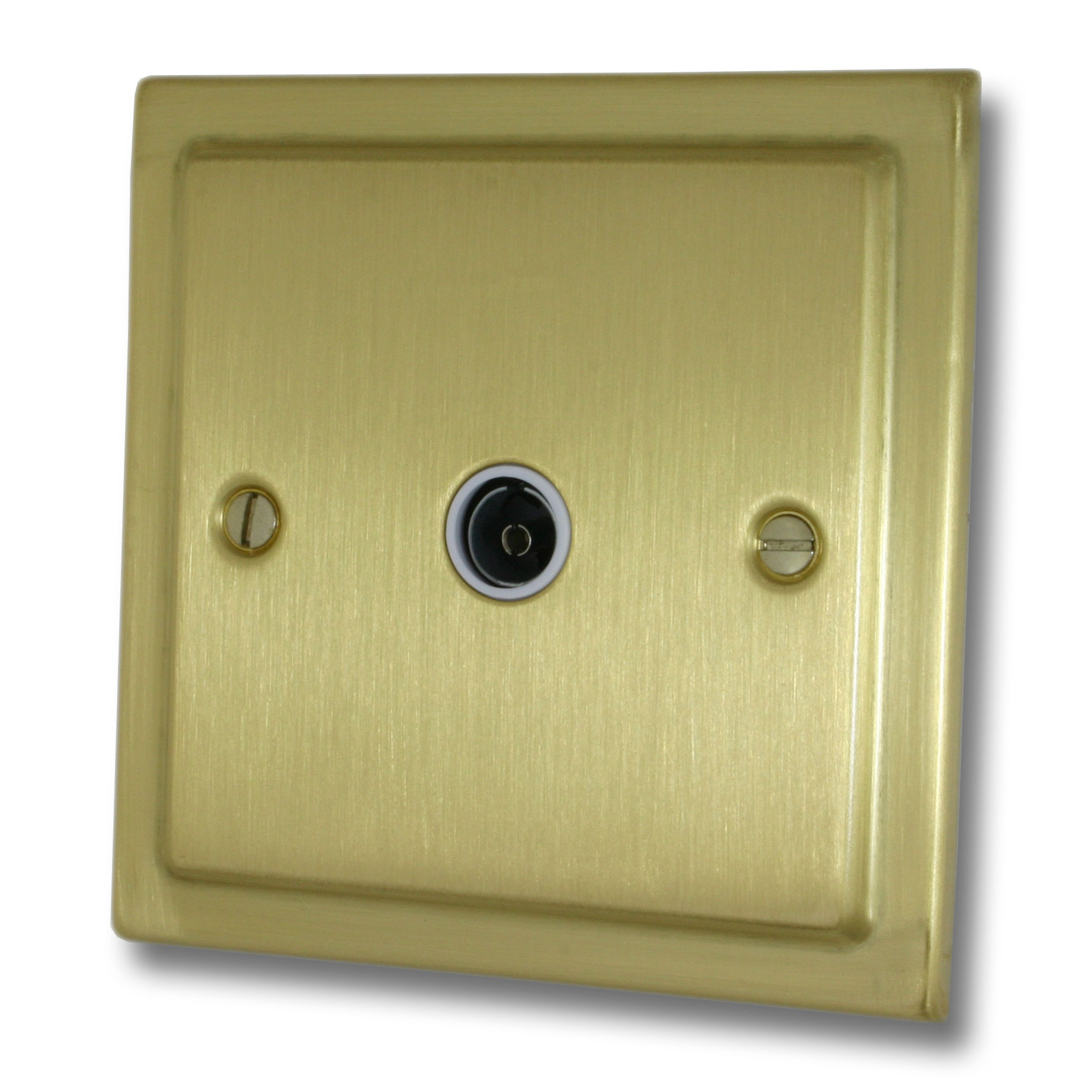 Trimline Satin Brass Single TV Point (White Insert) - G+H TSB35W