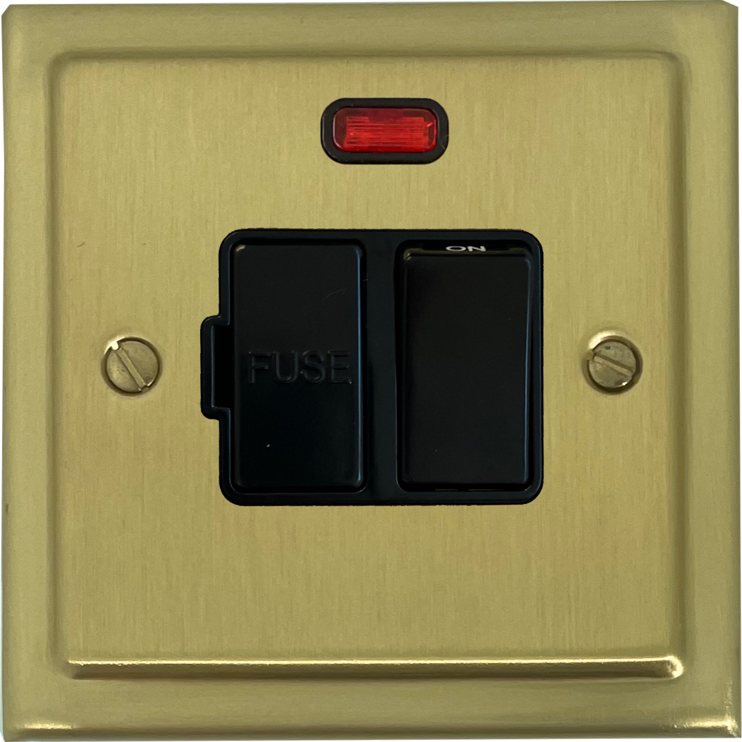 Trimline Satin Brass Switched Fused Spur with Neon (Black Switch) - G+H TSB27B