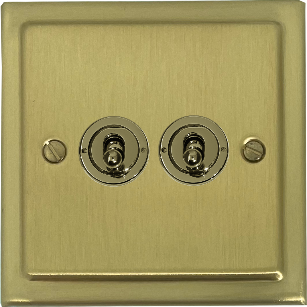 Trimline Satin Brass Toggle Switch (2 Gang) - G+H TSB382