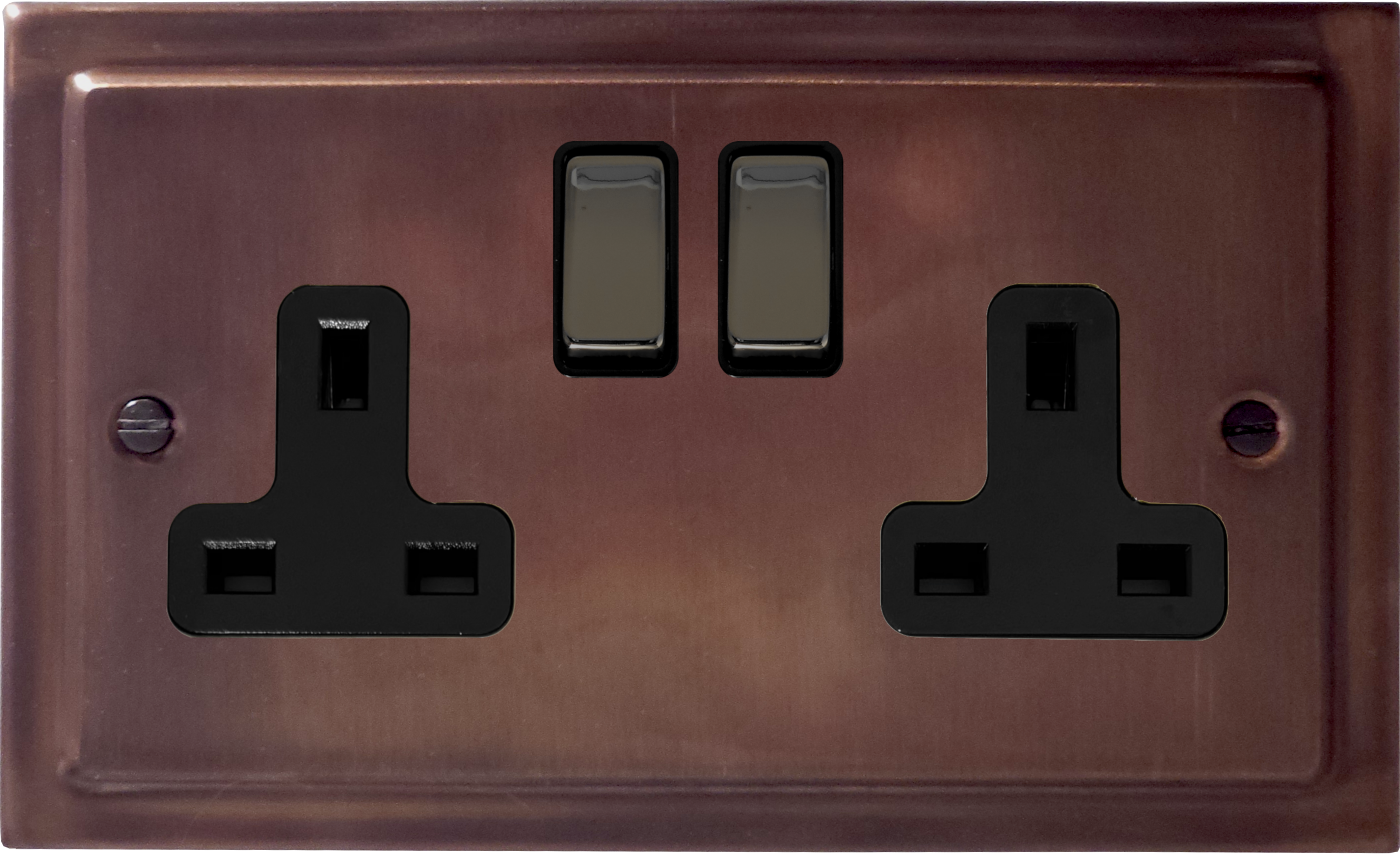 Trimline Tarnished Copper Double Socket (Black Nickel Switch) - G+H TTC310
