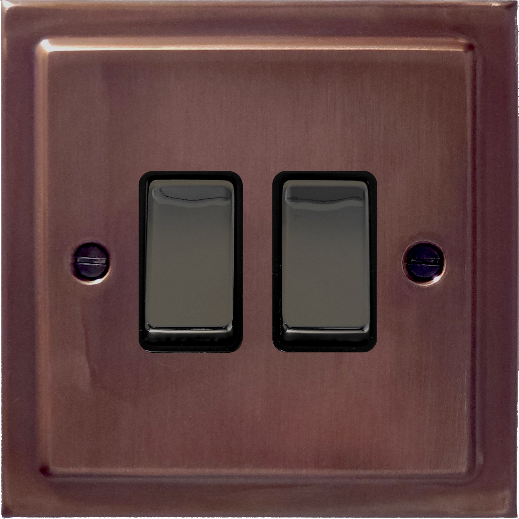 Trimline Tarnished Copper Light Switch (2 Gang/Black Nickel Switch)