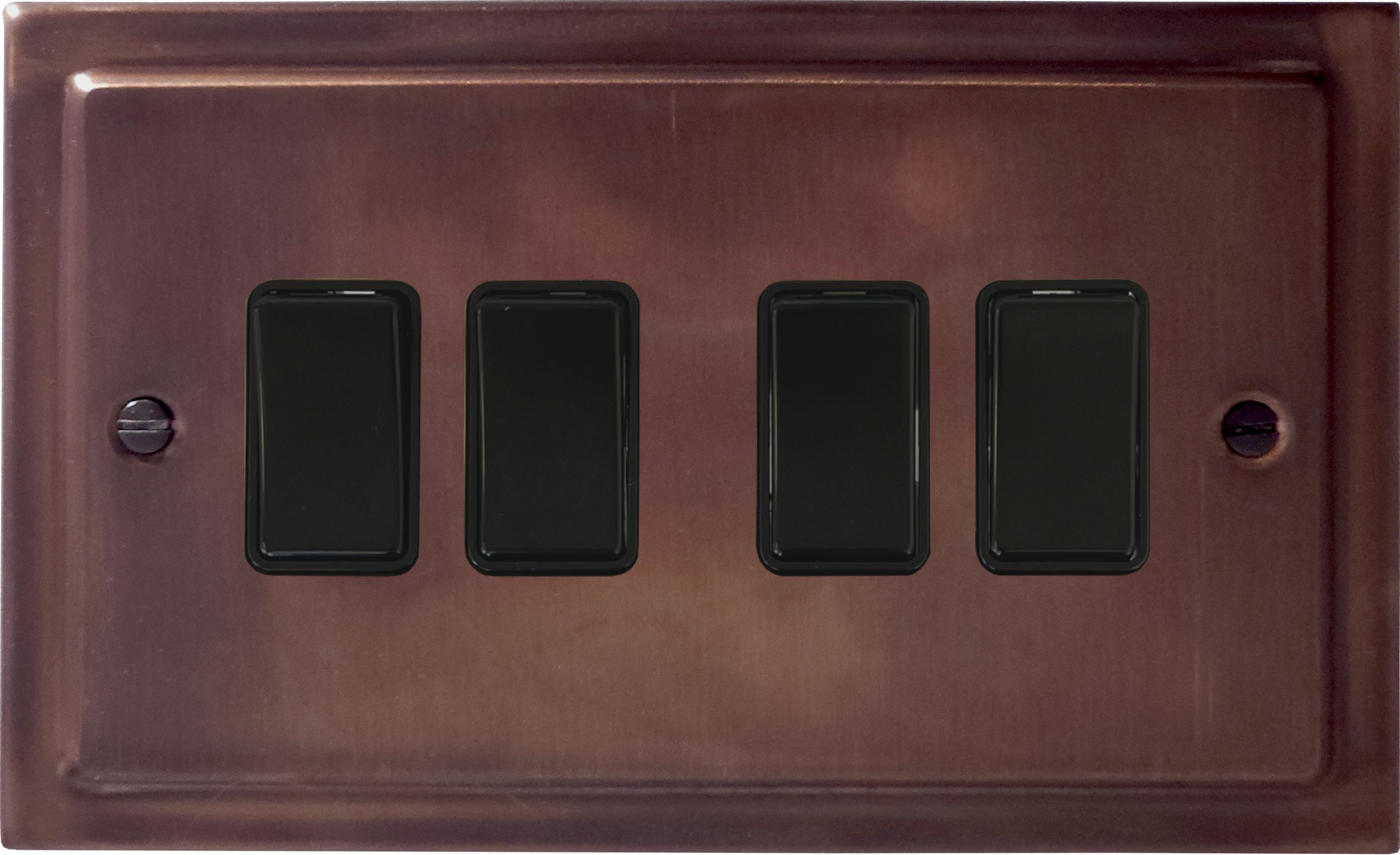 Trimline Tarnished Copper Light Switch (4 Gang/Black Switch) - G+H TTC4B