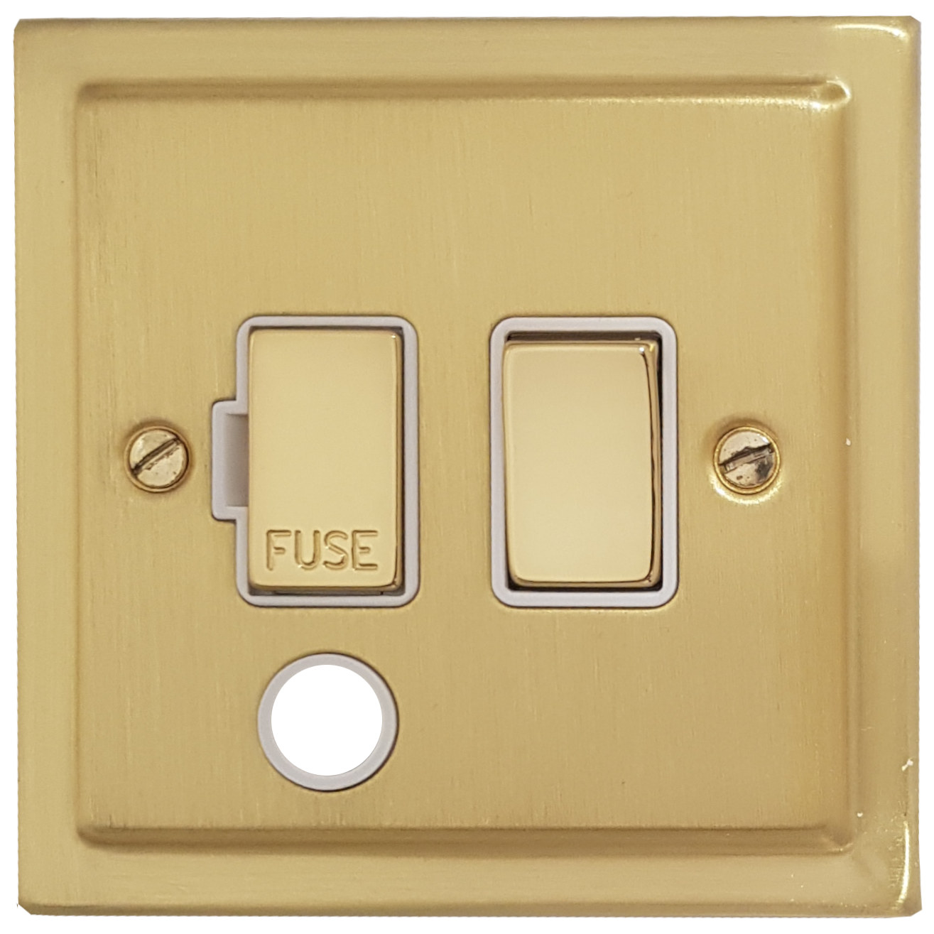 TrimlineSatin Brass Switched Fused Spur with Flex Outlet (Brass Switch/White Insert) - G+H TSB256