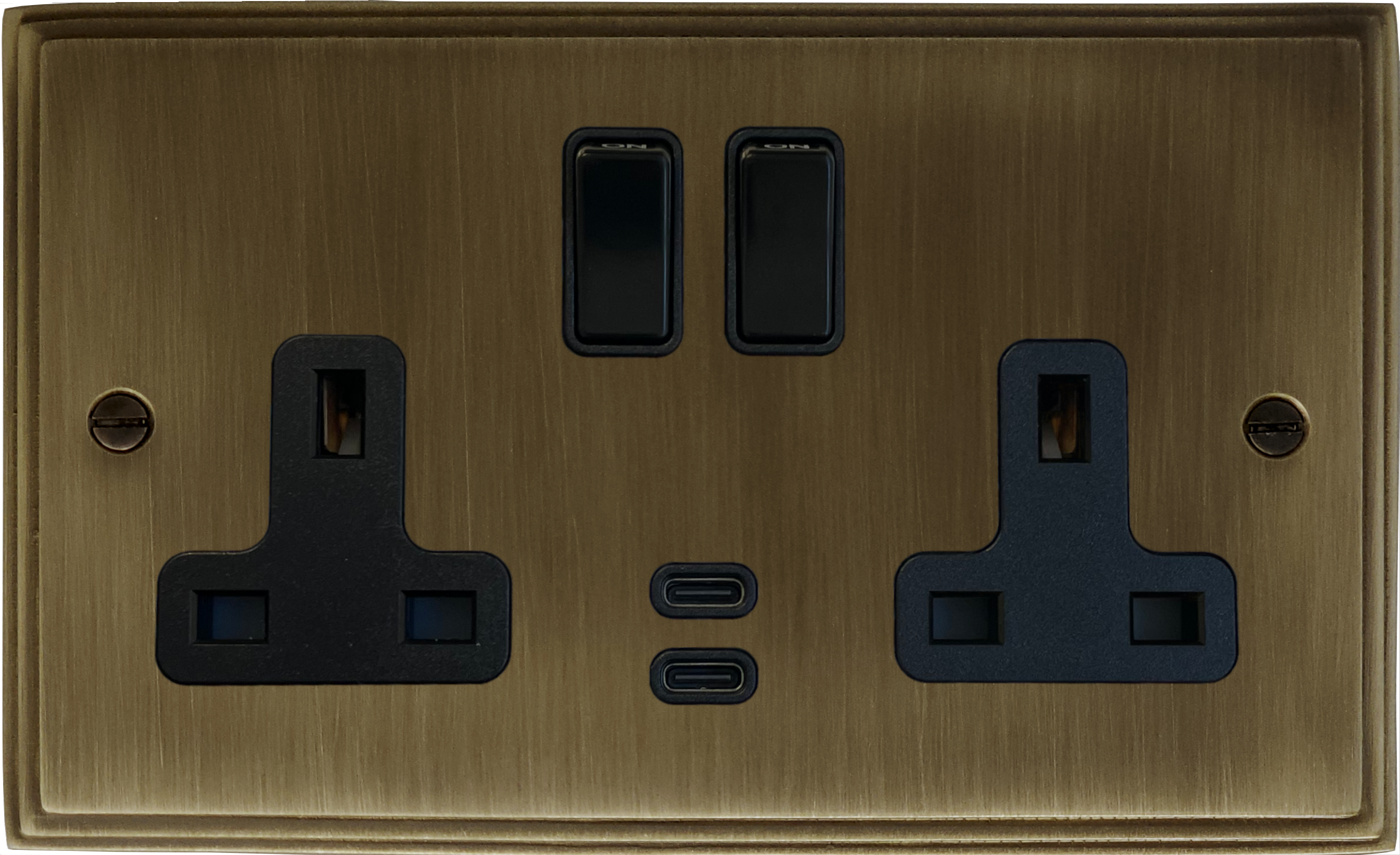 Victorian Antique Brass 2 Gang USBC Socket (Black Switches)