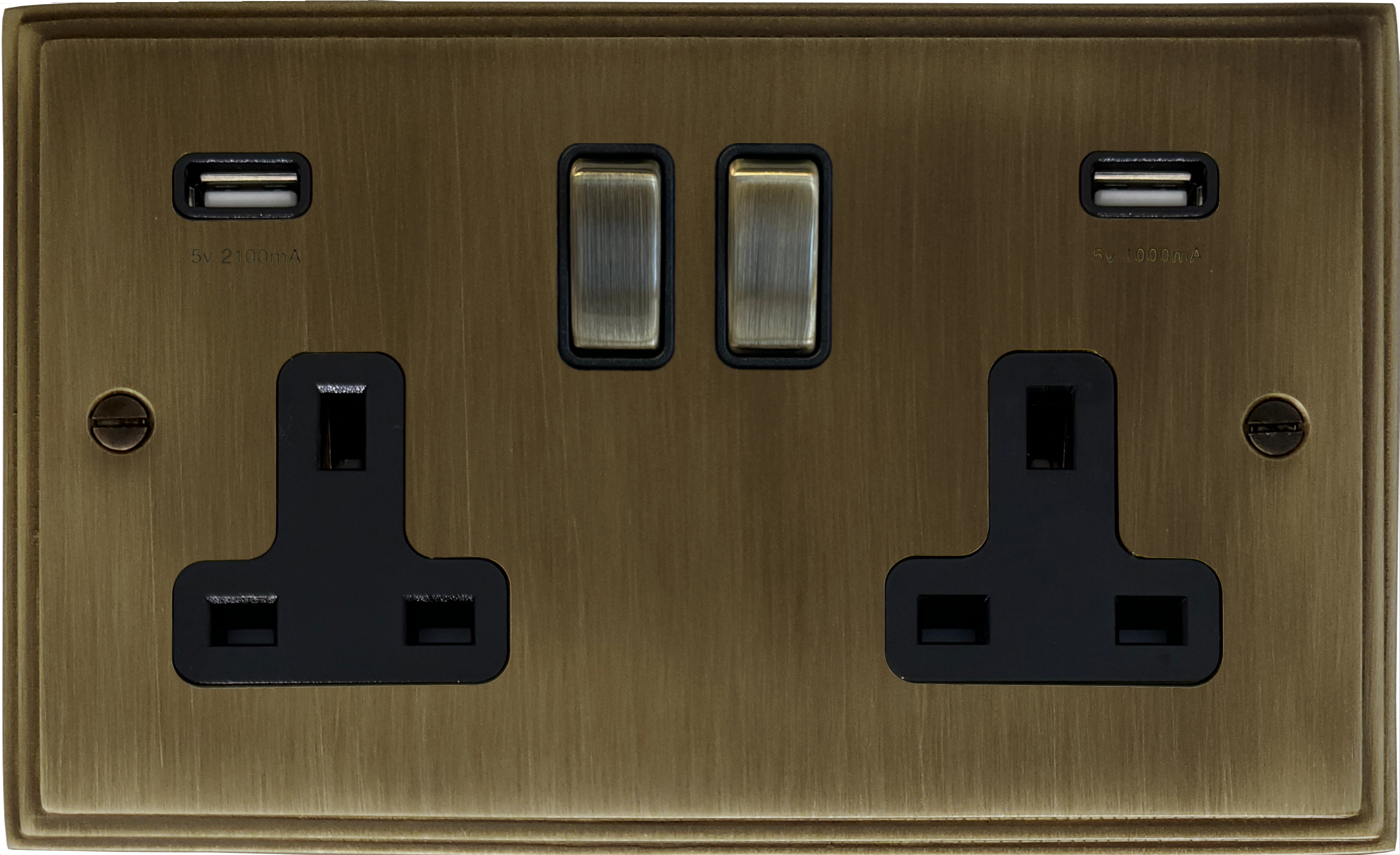 Victorian Antique Brass Double Socket with USB - G+H VAB3910