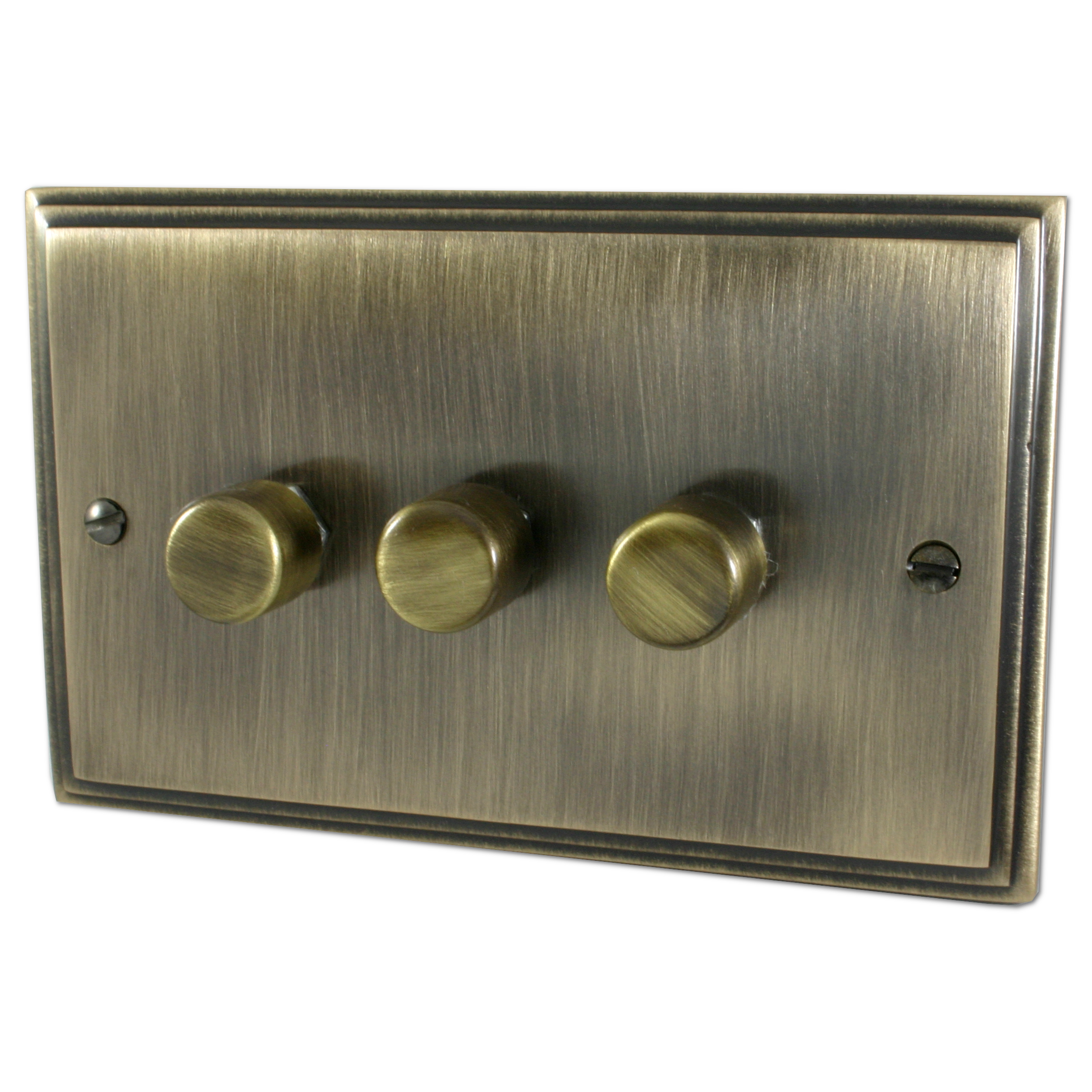 Victorian Antique Brass Push Dimmer (3 Gang/400W) - G+H VAB13