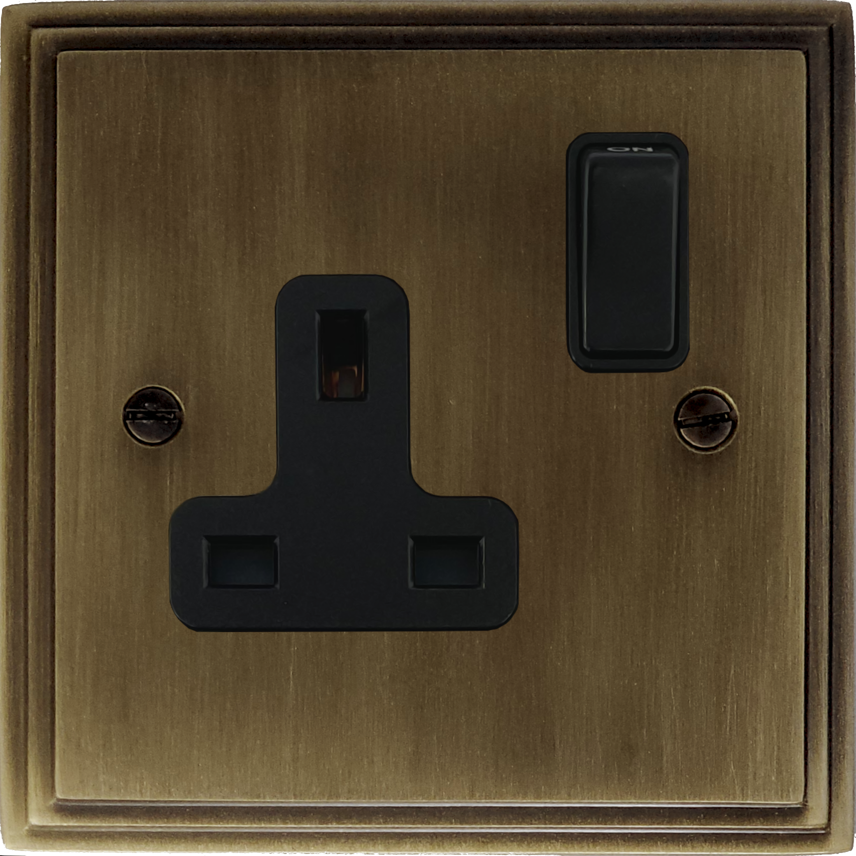 Victorian Antique Brass Single Socket (Black Switch) - G+H VAB9B