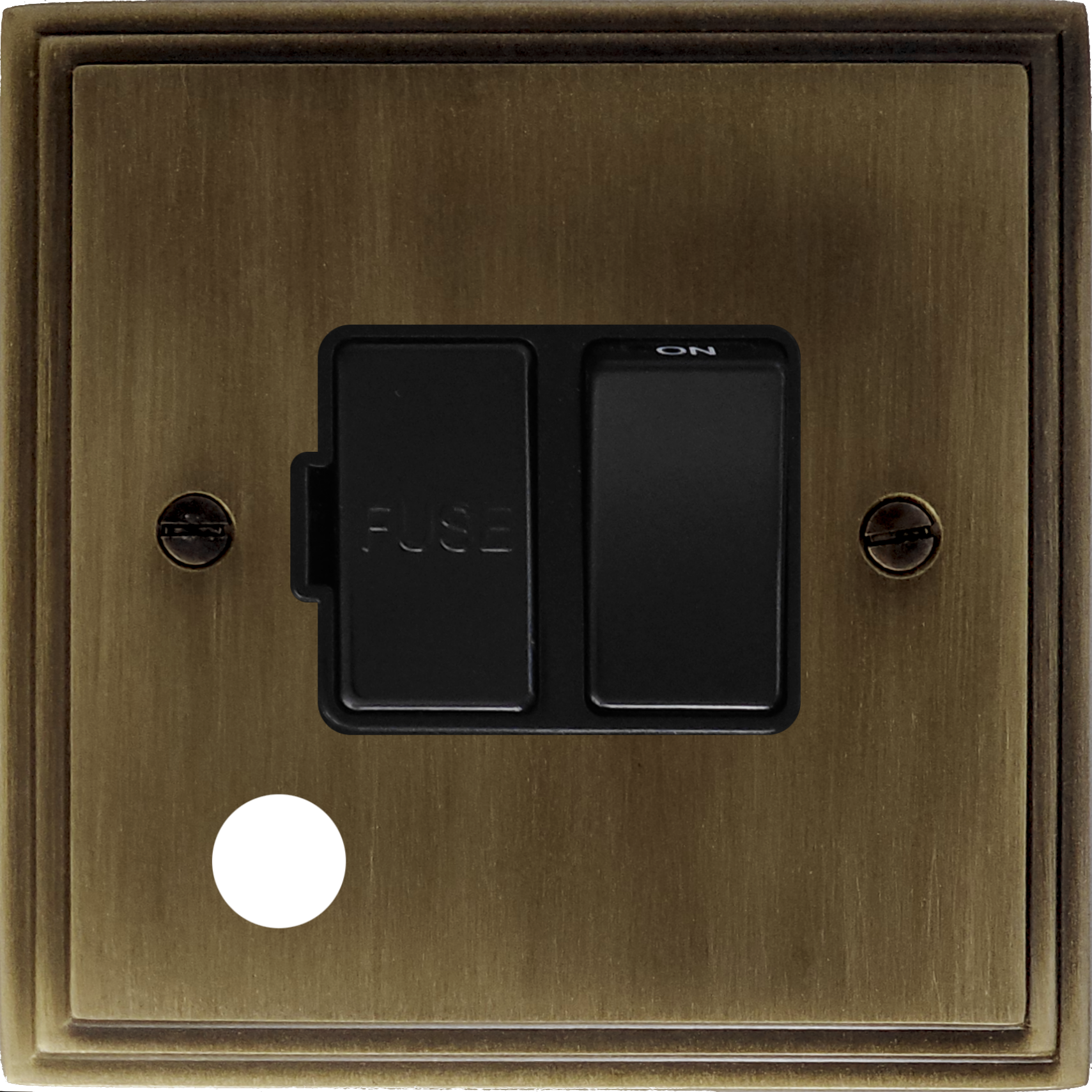Victorian Antique Brass Switched Fused Spur with Flex Outlet (Black Switch) - G+H VAB56B