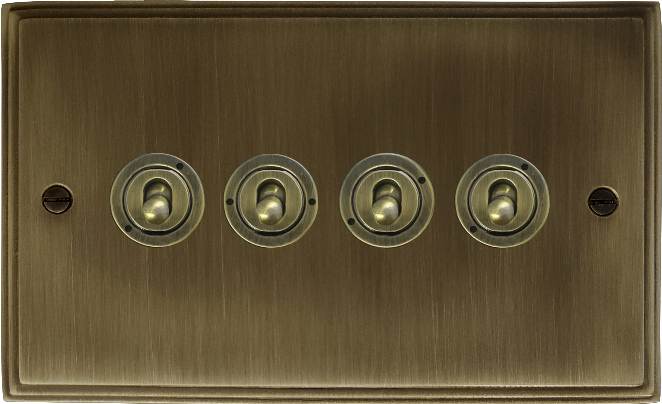 Victorian Antique Brass Toggle Plate (4 Gang) - G+H VAB384