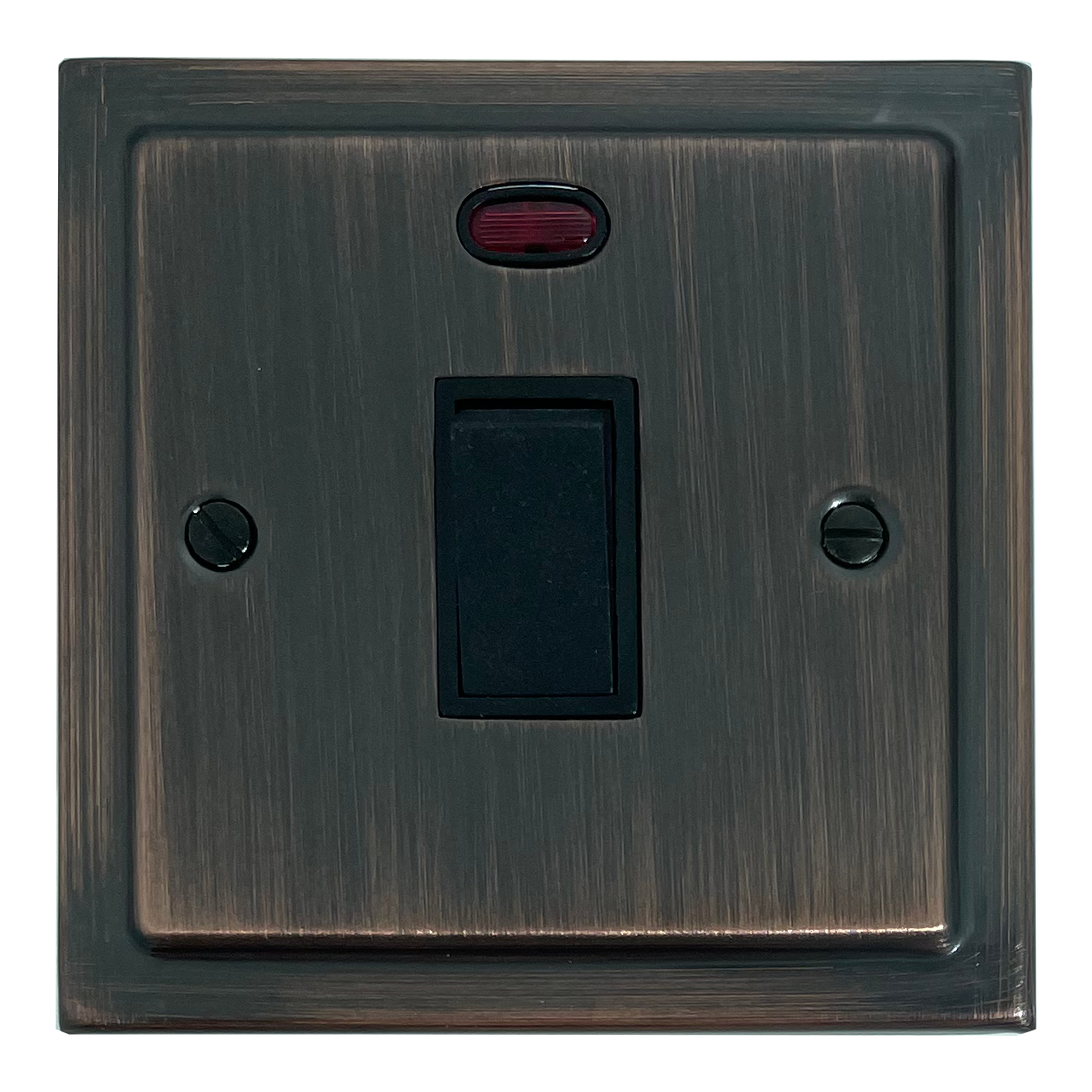 Victorian Antique Copper 20A DP Switch with Neon (Black Switch)-419714 - G+H TAC26B