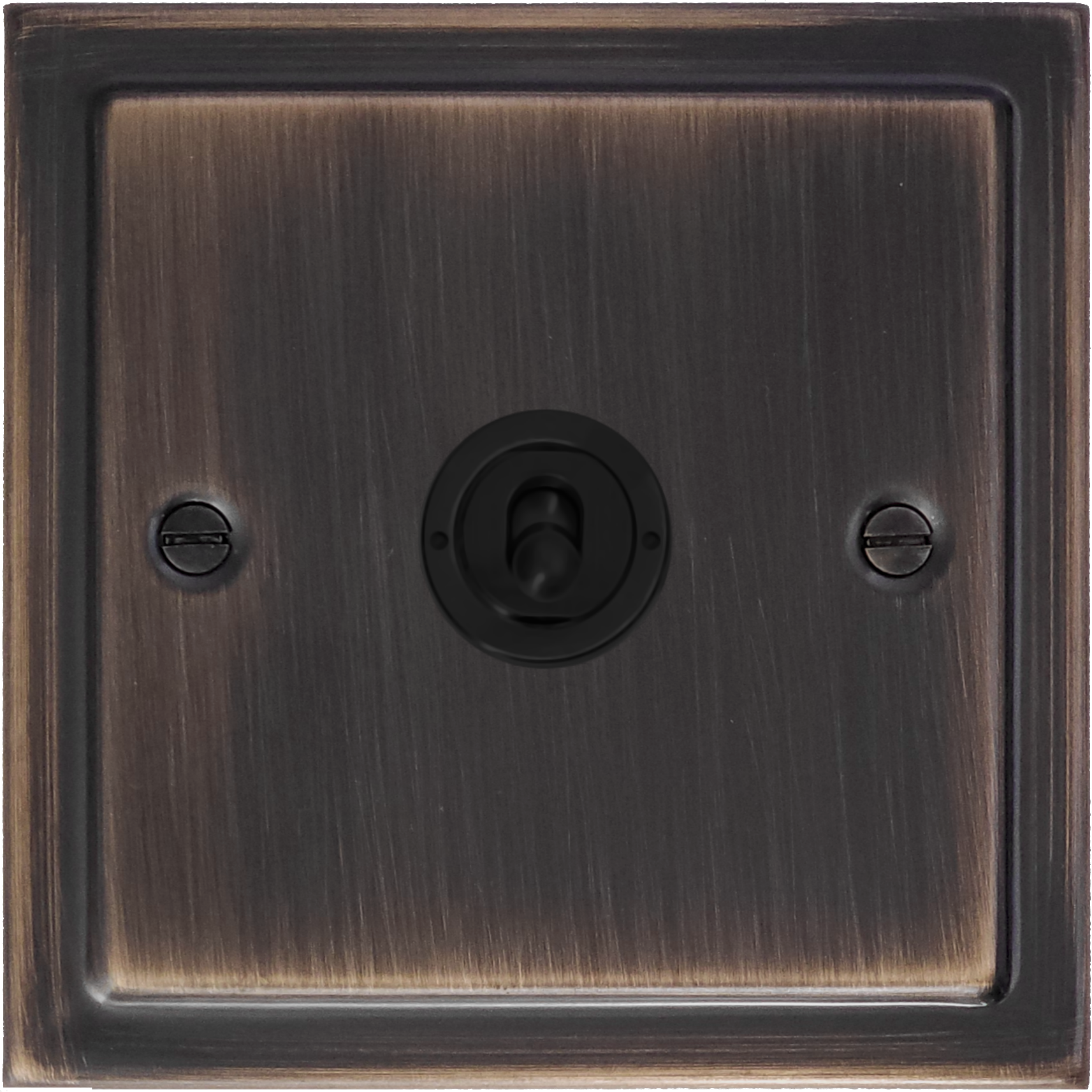 Victorian Antique Copper Intermediate Toggle Switch (1 Gang/Flat Black Toggle) - G+H TAC385-FBK