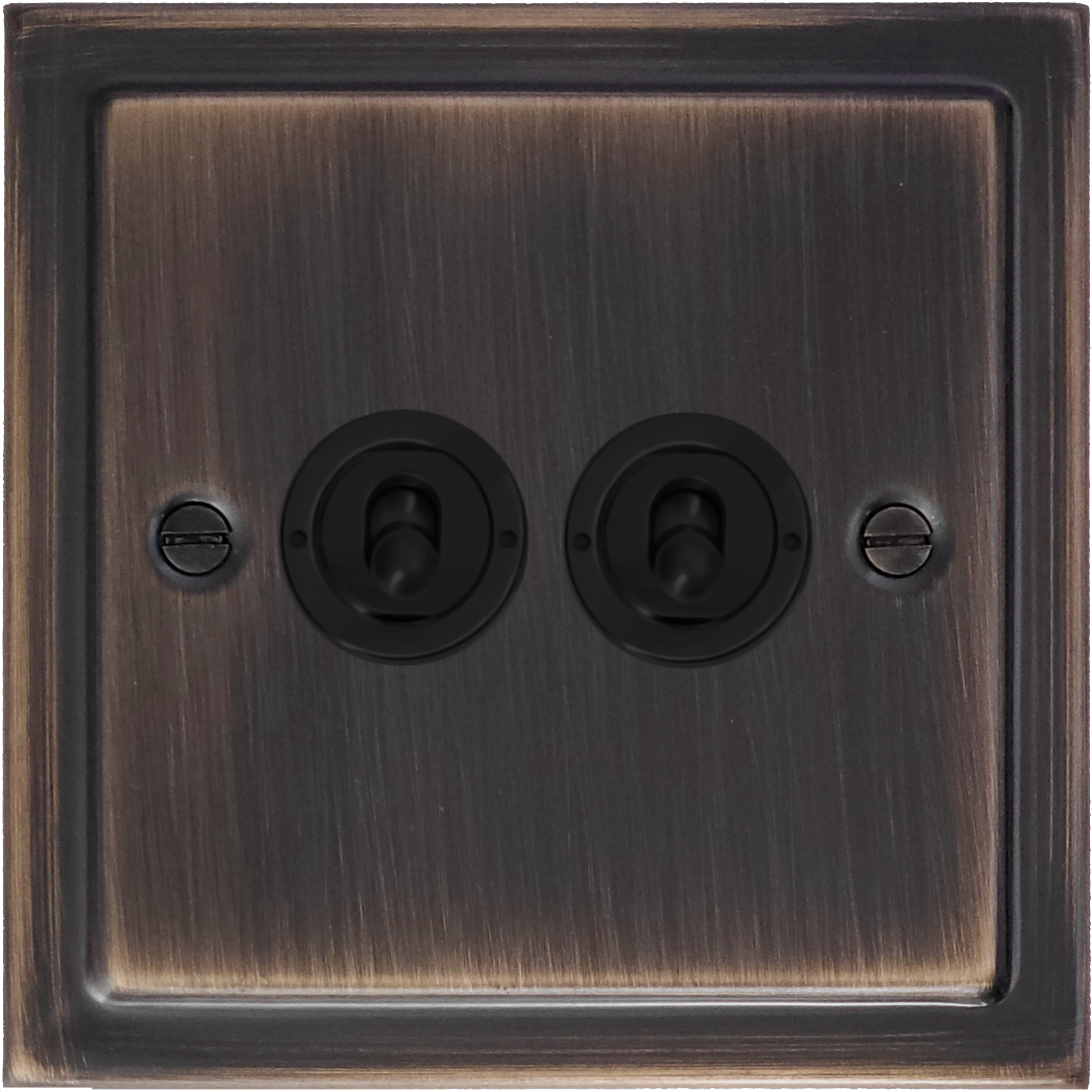 Victorian Antique Copper Toggle Switch (2 Gang/Flat Black Toggle) - G+H TAC382-FBK