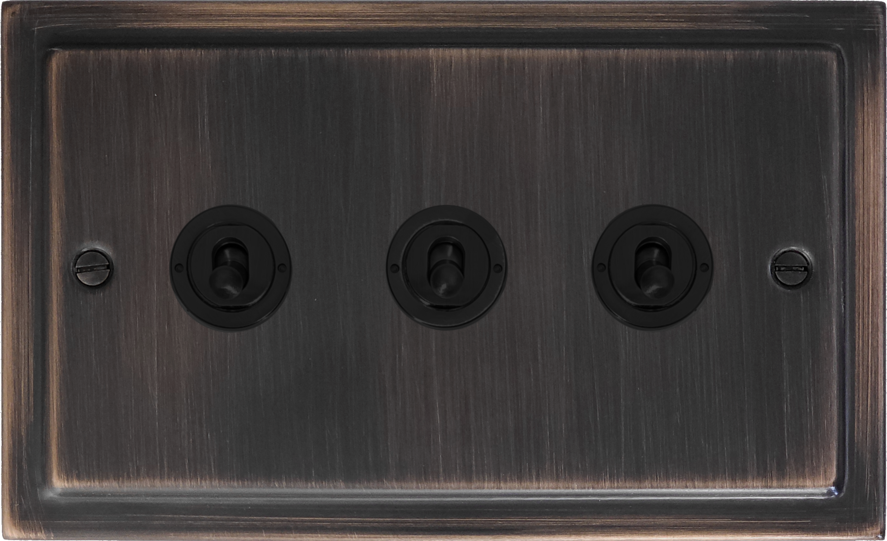 Victorian Antique Copper Toggle Switch (3 Gang/Flat Black Toggle) - G+H TAC383-FBK