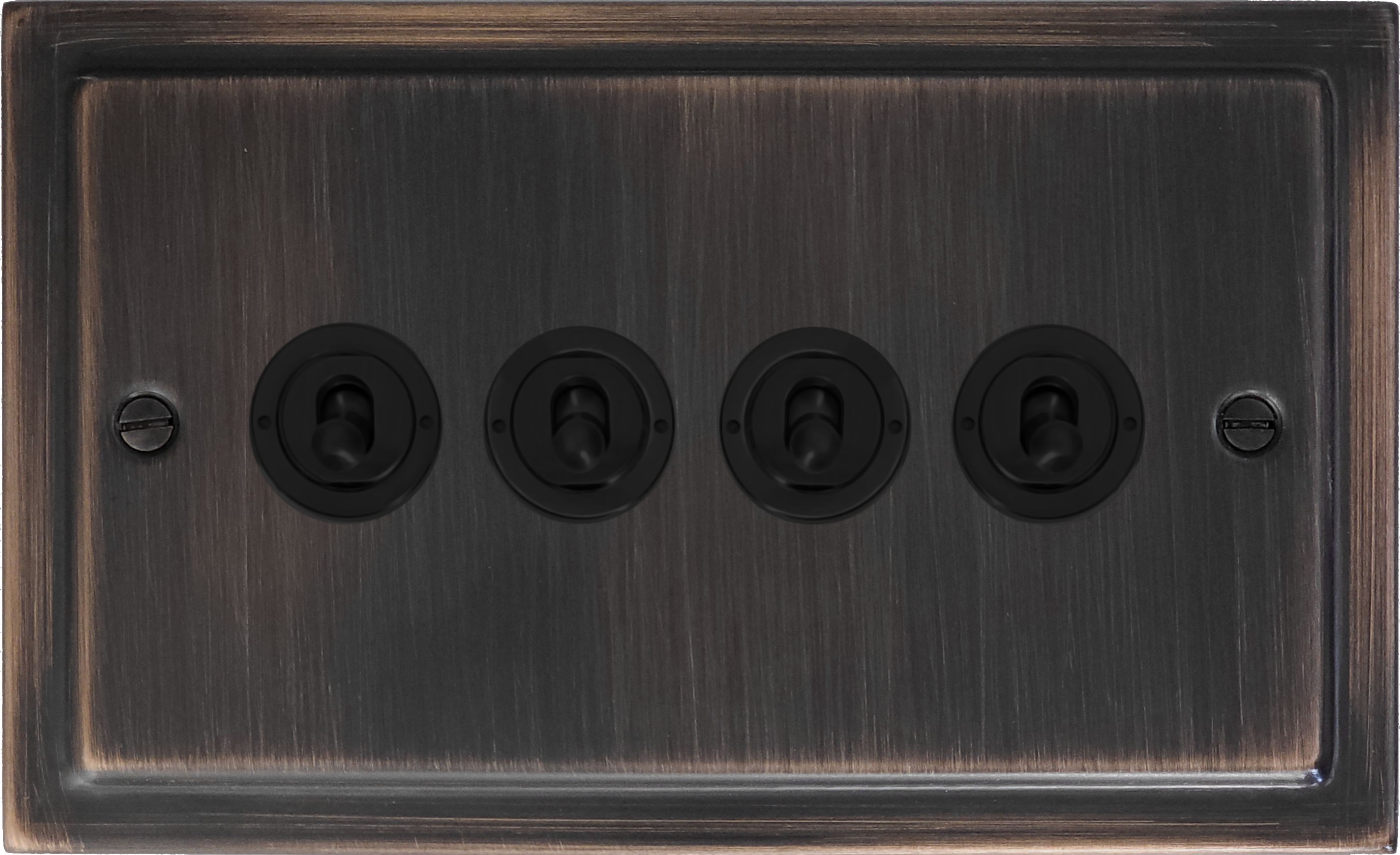 Victorian Antique Copper Toggle Switch (4 Gang/Flat Black Toggle) - G+H TAC384-FBK