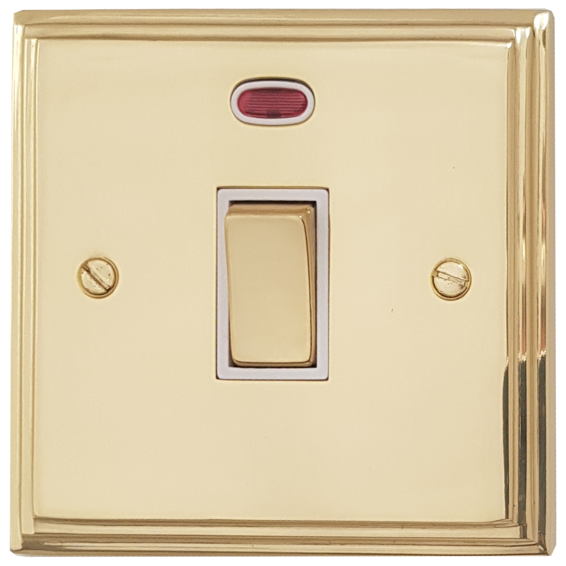 Victorian Cast Polished Brass 20A DP Switch with Neon (White Insert) - G+H VB226