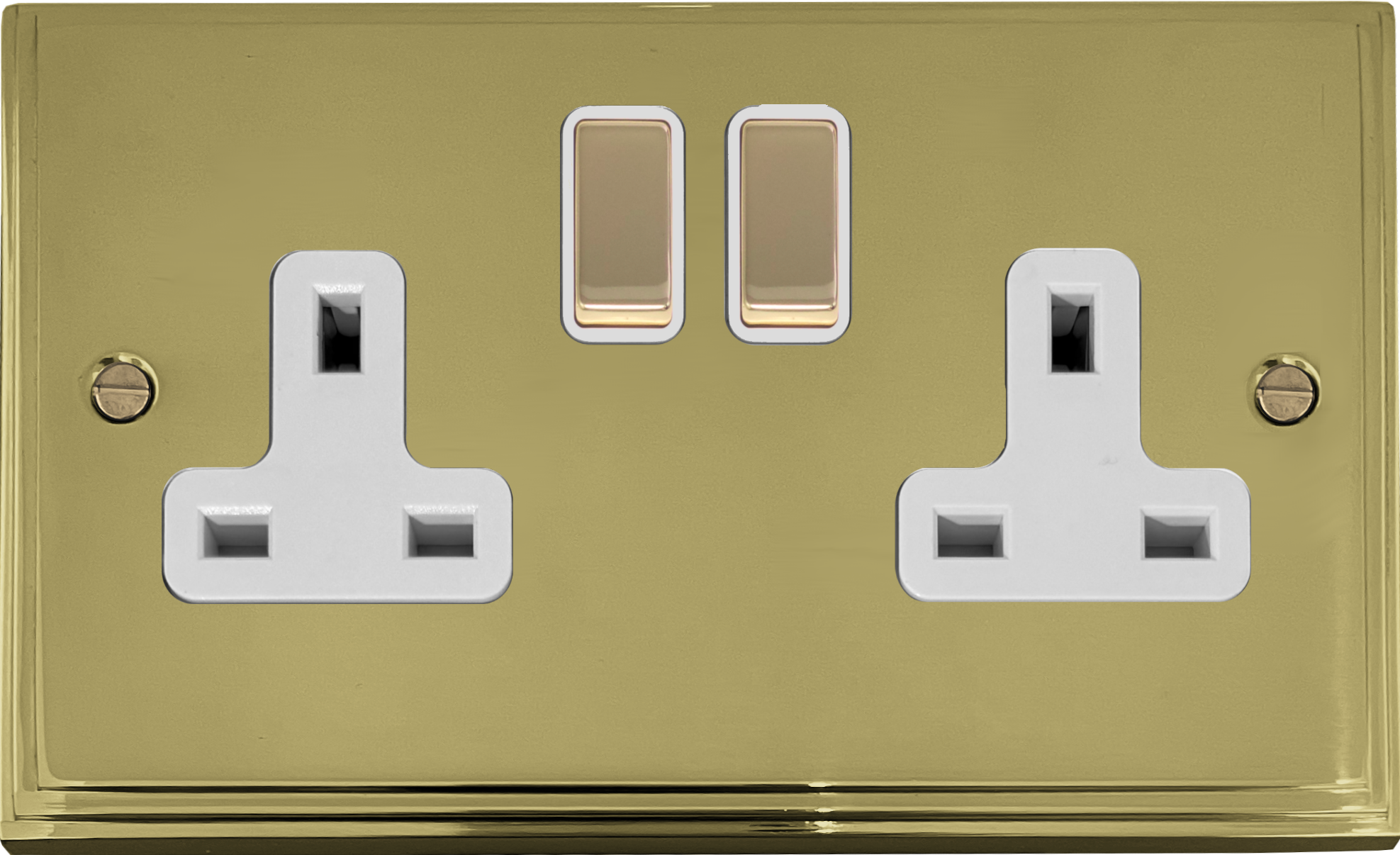 Victorian Cast Polished Brass Double Socket (White Insert) - G+H VB210