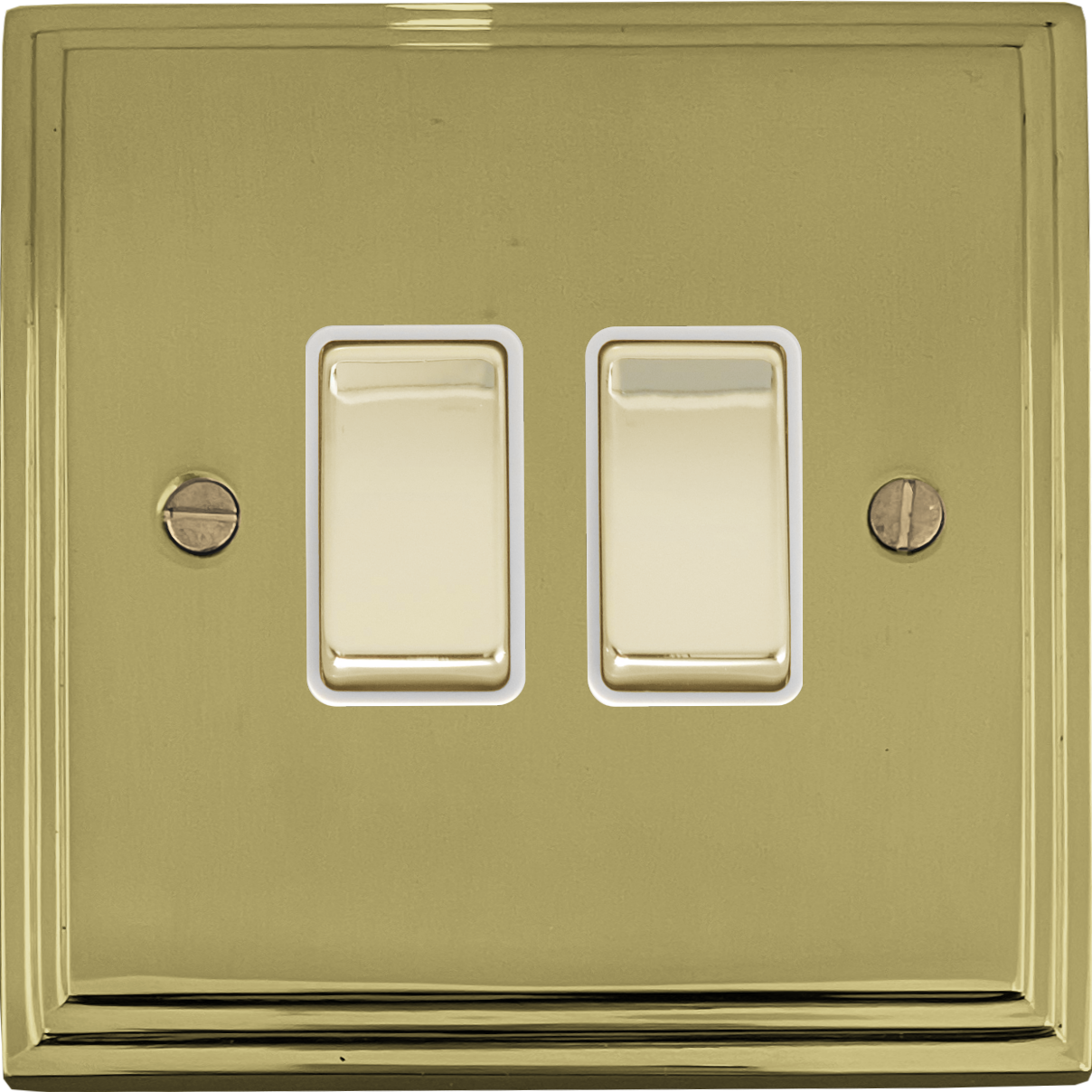 Victorian Cast Polished Brass Light Switch (2 Gang/White Insert) - G+H VB202