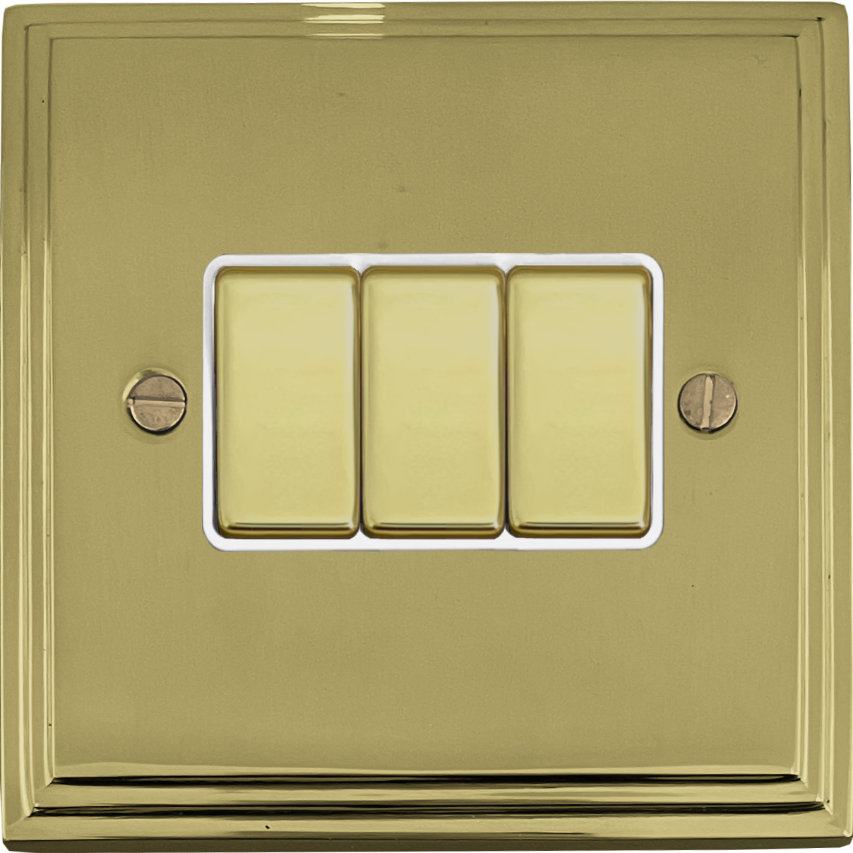 Victorian Cast Polished Brass Light Switch (3 Gang/White Insert)
