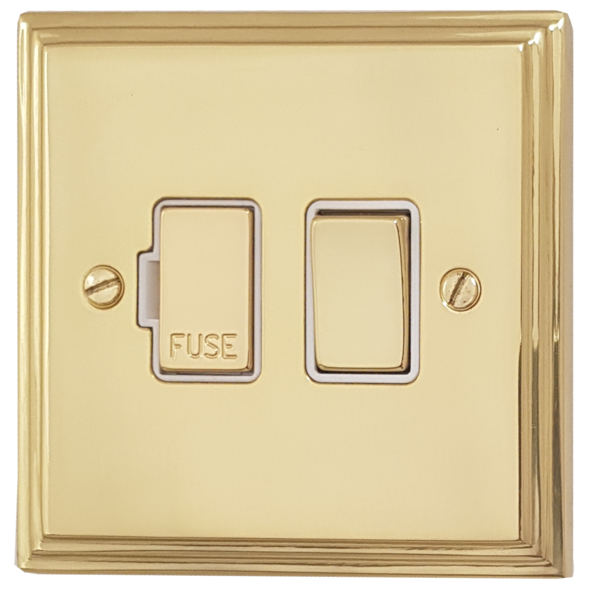 Victorian Cast Polished Brass Switched Fused Spur (White Insert) - G+H VB257